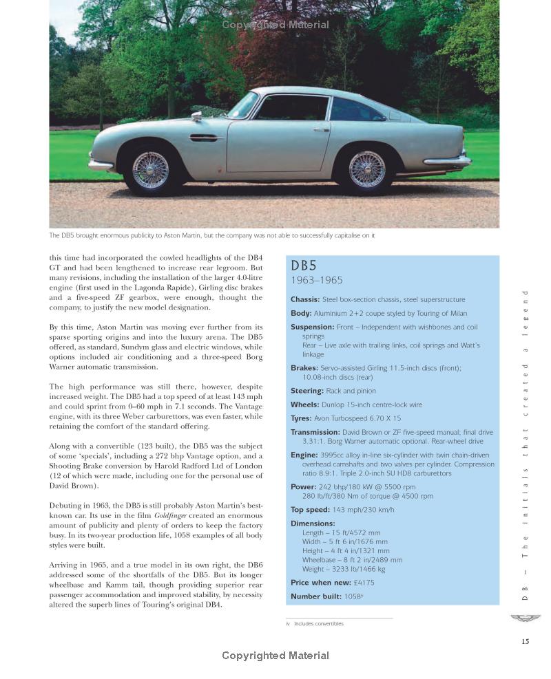 A graduate of Melbourne University, motoring journalist David Dowsey initially came from a musical background. He has had a genuine and passionate interest in Aston Martins for many years after first coming into contact with the marque through the famous Corgi toys. His profession allows him to sample the latest and greatest motoring products, and as a long-time owner of an Aston Martin he is well-placed to present this comprehensive study of a vital period in the brand's history. Should there be a break before “A member of the Guild of Motoring Artists and Australian Automotive Artists", English-born Mike Harbar is passionate about cars and drawing them. He has drawn the lot, from AMR-1 to Zagato. Since moving to Australia in 2000 Mike has continued his work as a freelance car artist with thousands of customers worldwide, producing artwork for magazines, car specialists, club events, race teams, corporations and private enthusiasts. More of Mike Harbar's artwork can be viewed at www.car-artist.com.