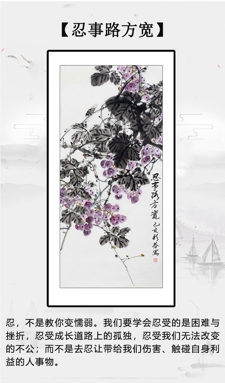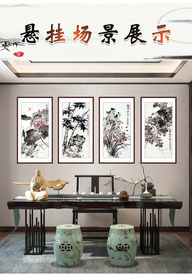 刘彩芬《清》《慎》《勤》《忍》50cm*100cm*4 花鸟竖幅作品 客厅/书房/茶室/餐厅挂画
