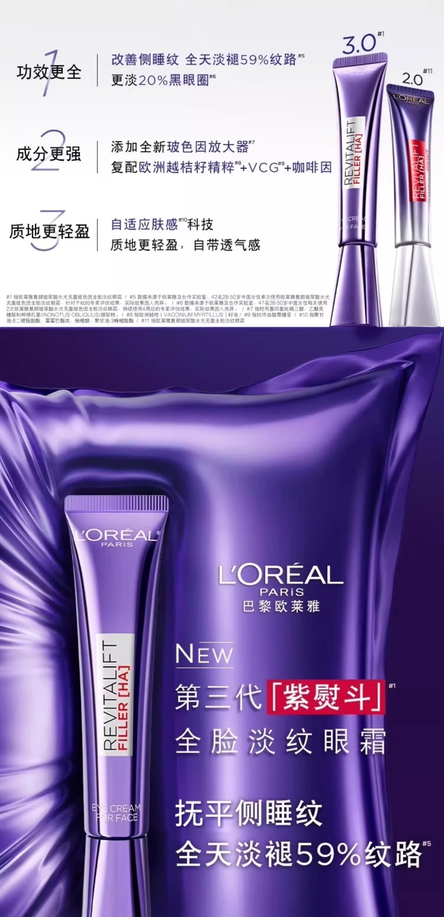 欧莱雅LOREAL 紫熨斗活力紧致眼霜 全脸抚纹霜30ml(带按摩头)【下滑拍优惠套餐链接送赠品】