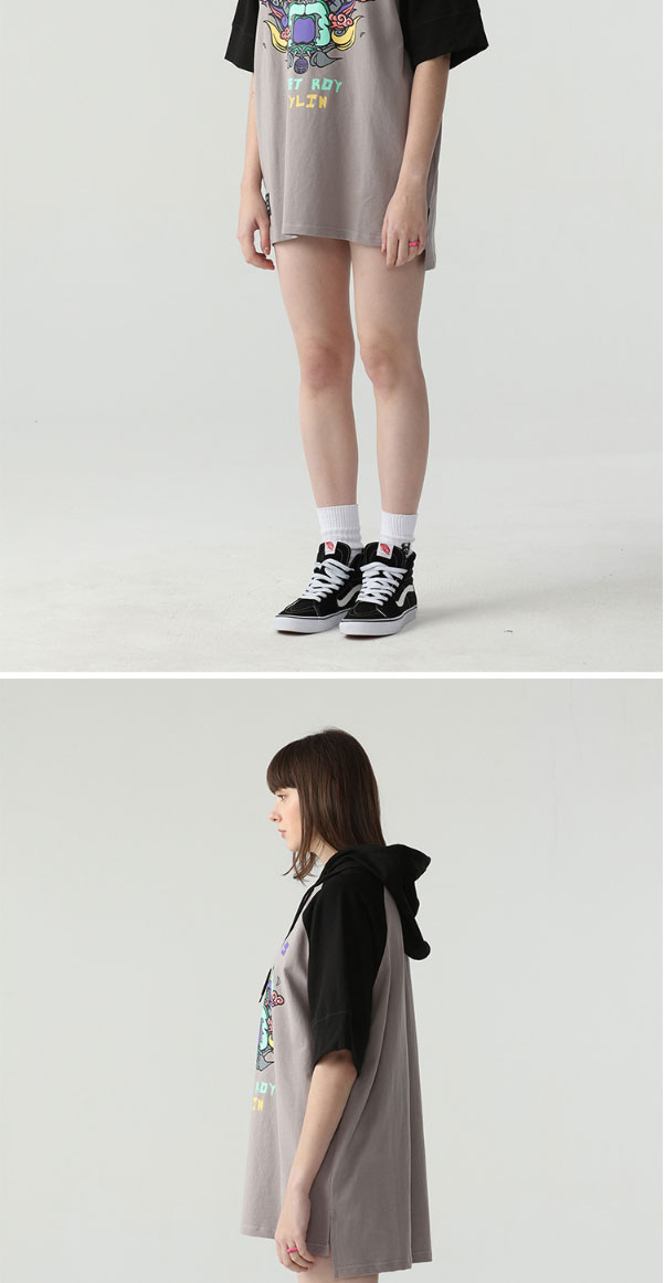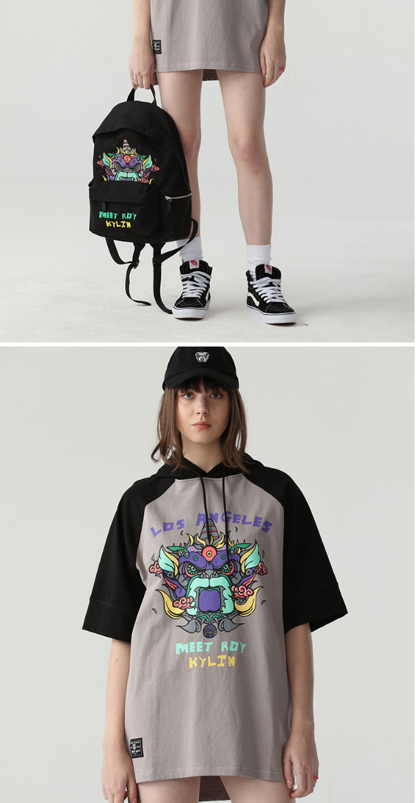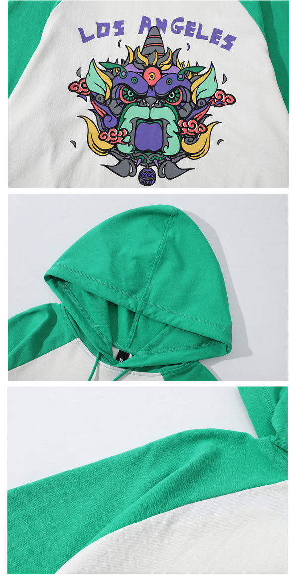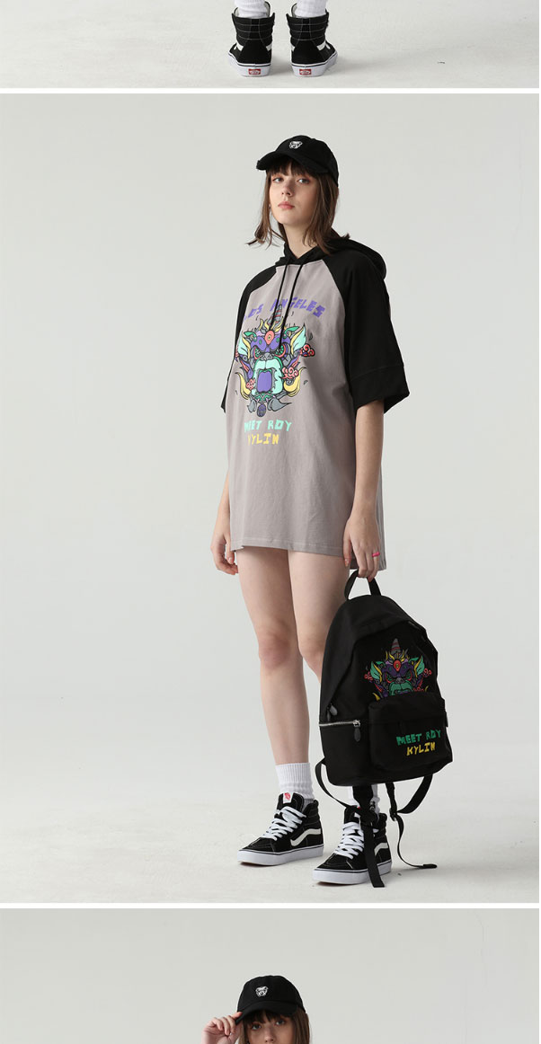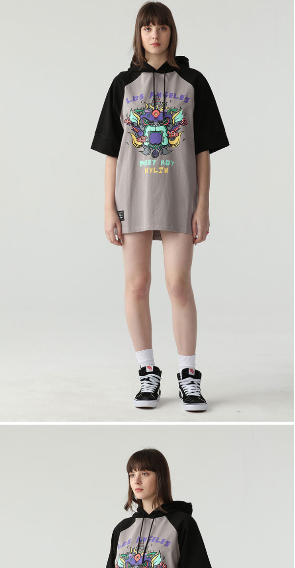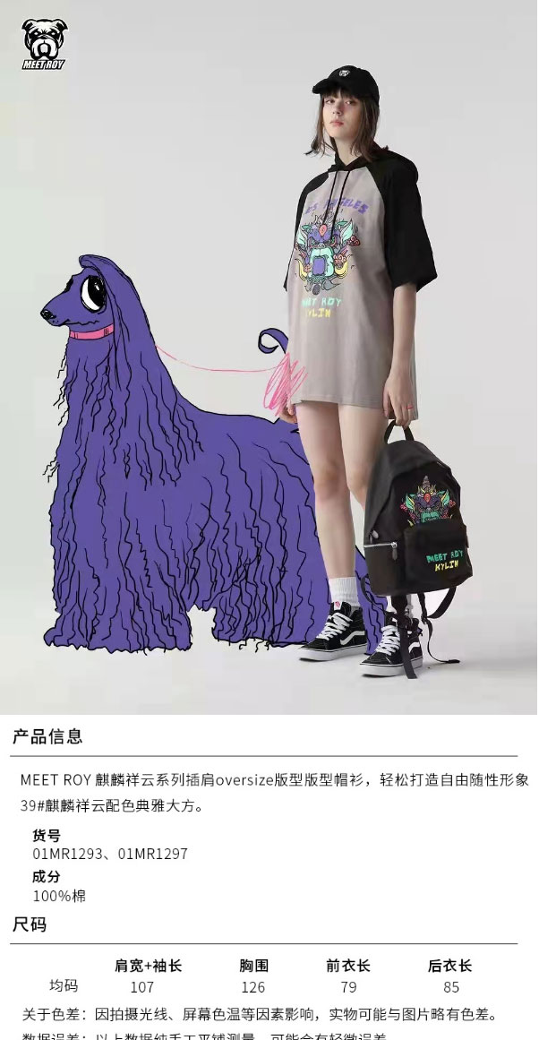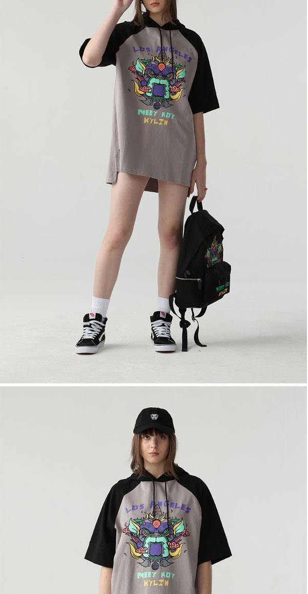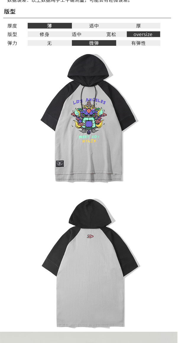 MEET.ROY麒麟祥云系列印花插肩oversize版型拼接半袖帽衫01MR1293