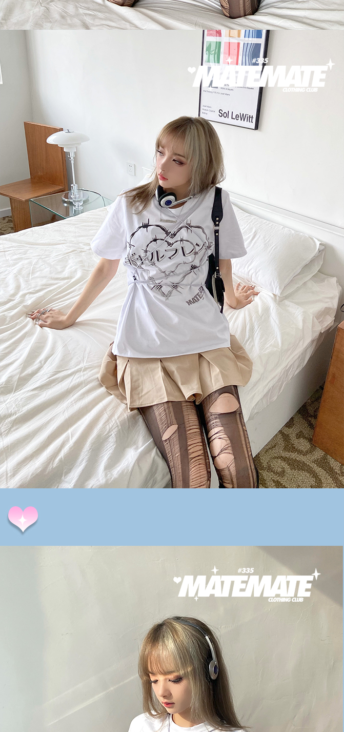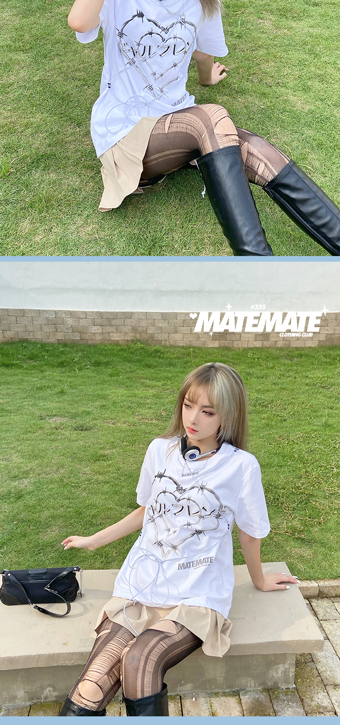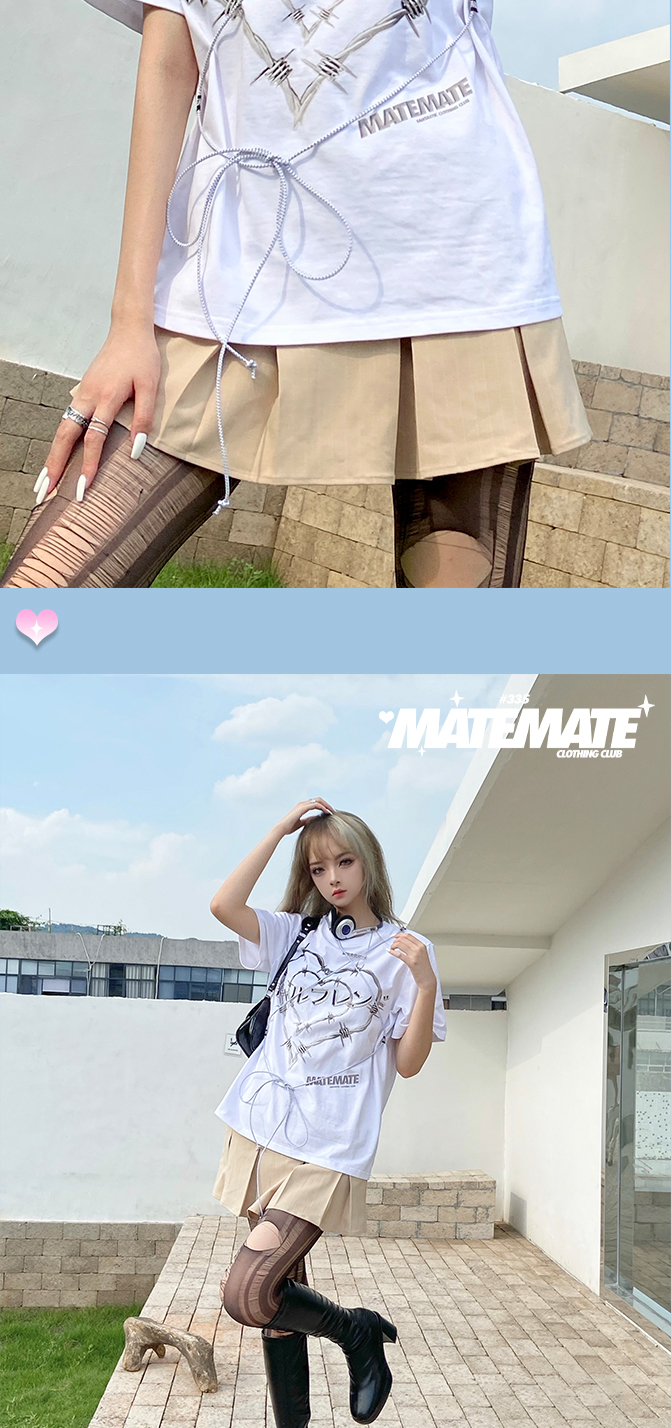 MATEMATE原创设计oversize百搭纯欲荆棘之爱绑带大T恤