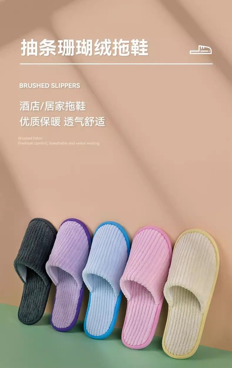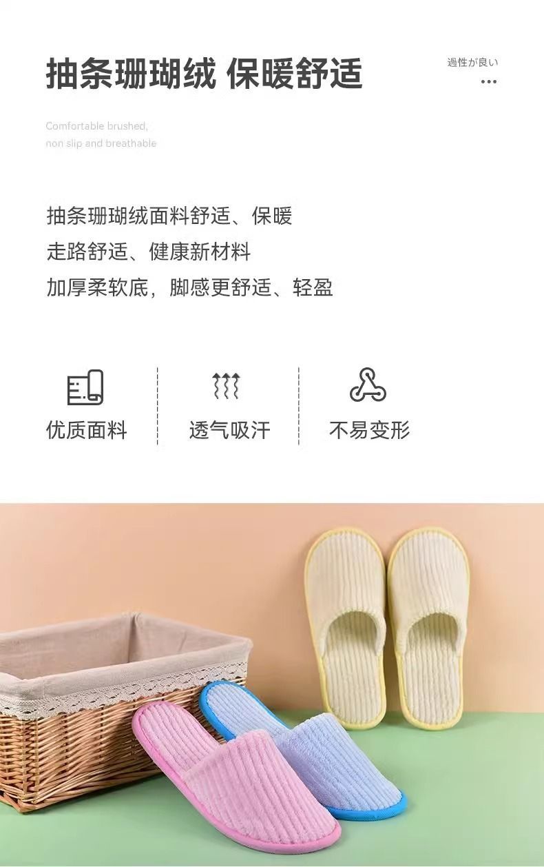 珊瑚绒一次性拖鞋秋冬款加厚防滑可洗澡家用五星级酒店美容院用品
