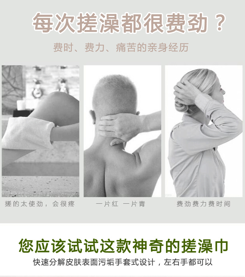 「搓灰神器」专利型洗澡巾搓澡巾 搓泥如下雨 轻松不费力不伤肤 去除皮肤角质清爽,买就送沐浴露,款式颜色随机发