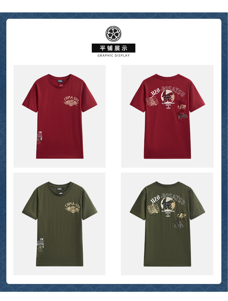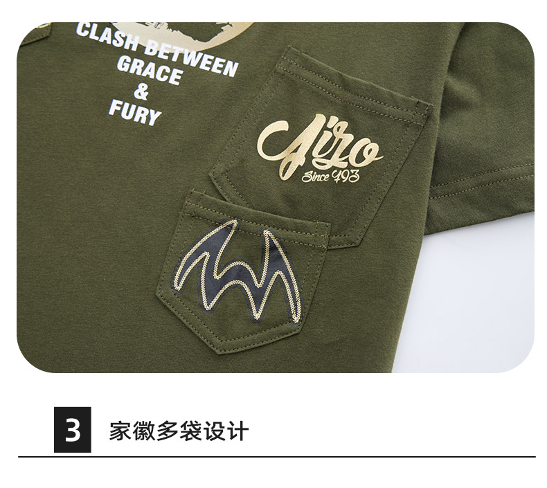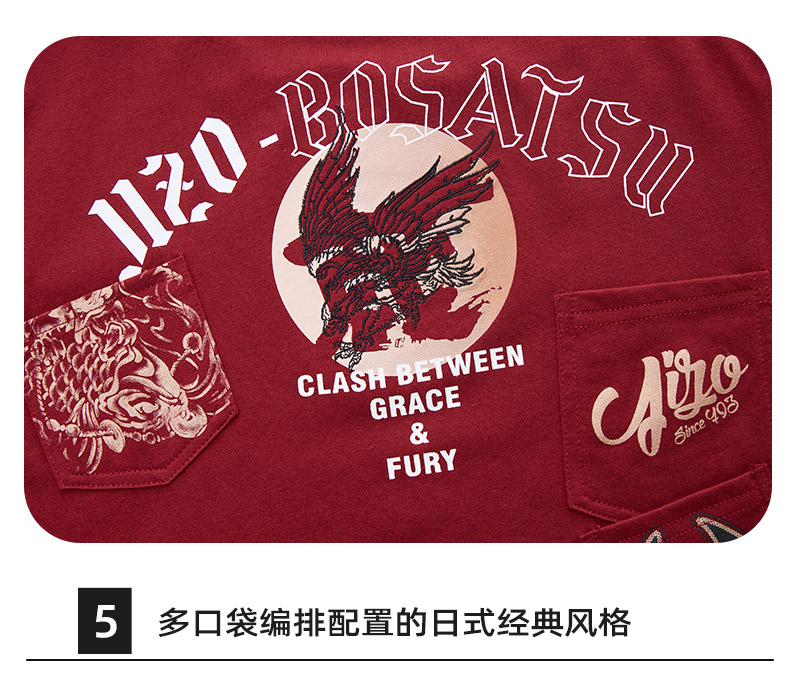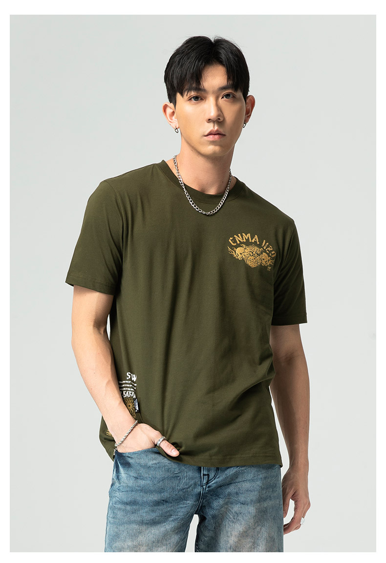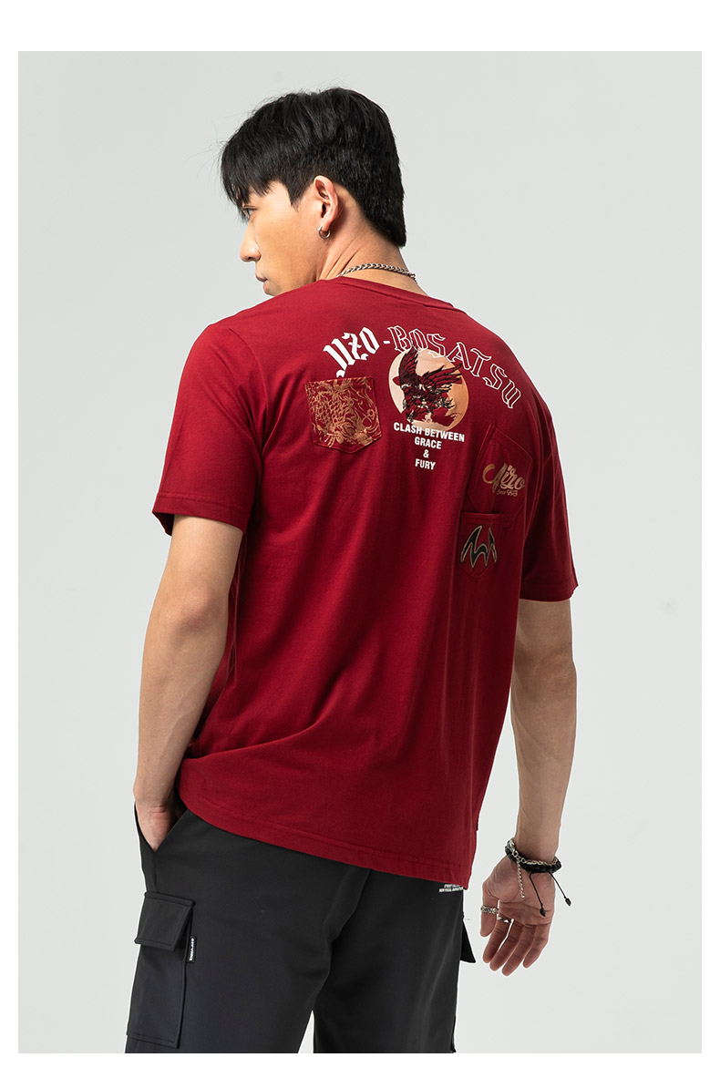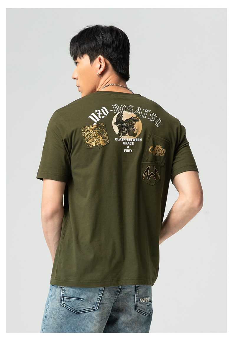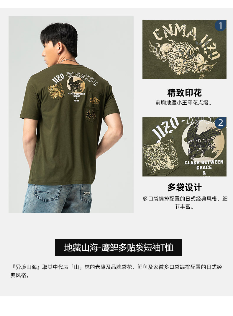 ONIARAI/鬼洗25春夏新品山海鹰鲤多贴袋宽松短袖T恤男式 J850203