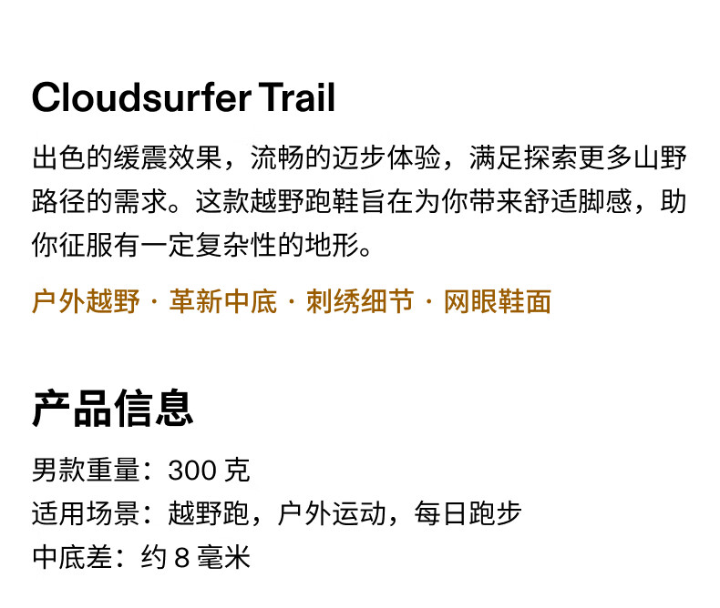 品名:On昂跑 Cloudsurfer Trail 低帮 越野跑步鞋