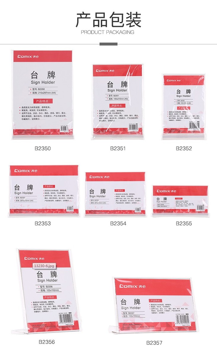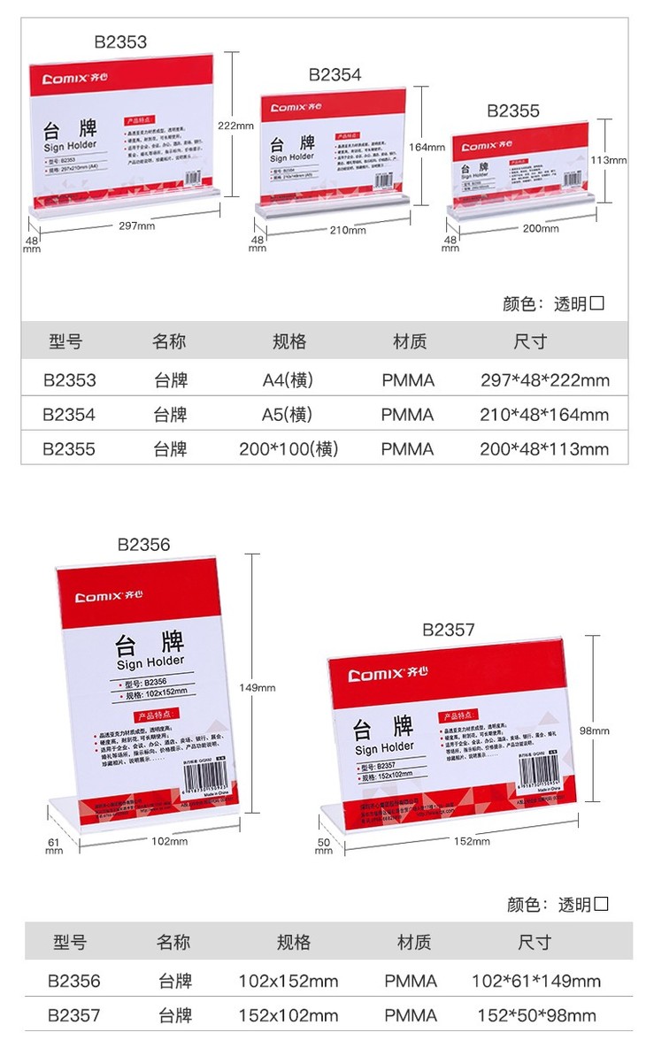 齐心台牌B2350/B2352/B2353/B2354/B2355/B2356/B2357透明