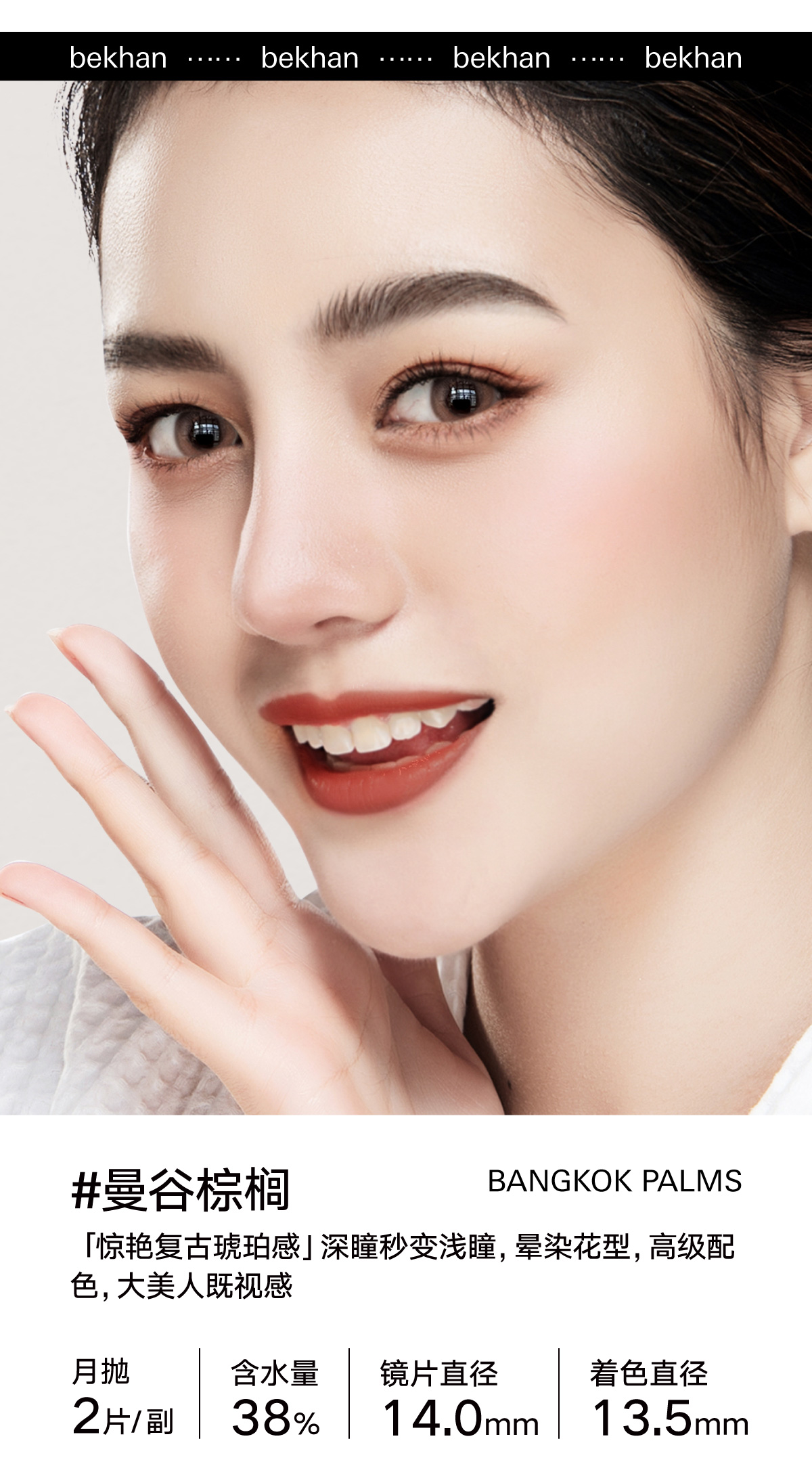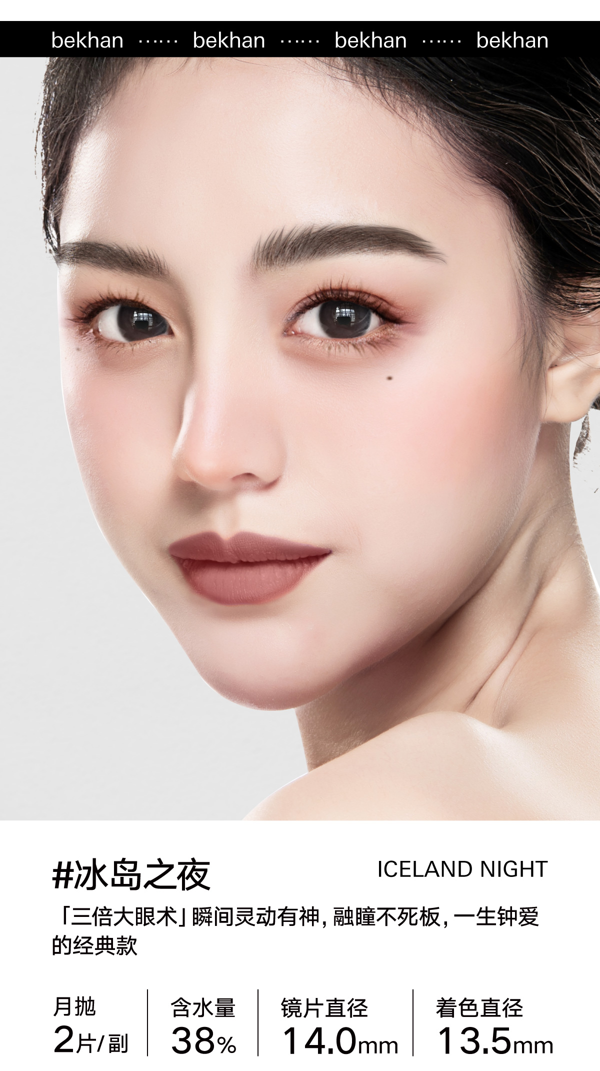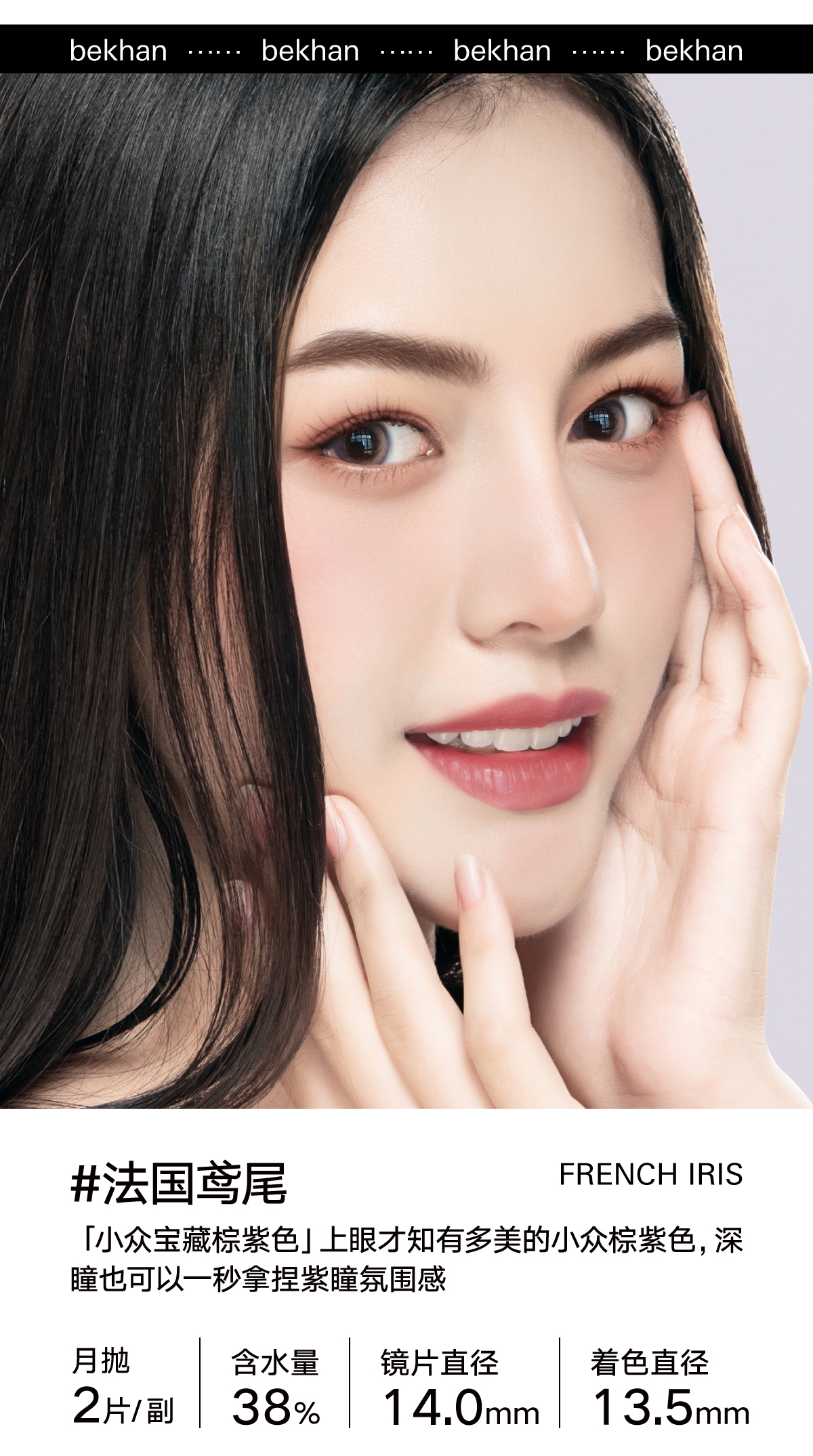 - Bekhan隐形眼镜,秉持“舒适与美”的产品理念,以“打造更适合敏感眼的彩瞳品牌”为目标,致力于成为中国美瞳行业优质产品缔造者。