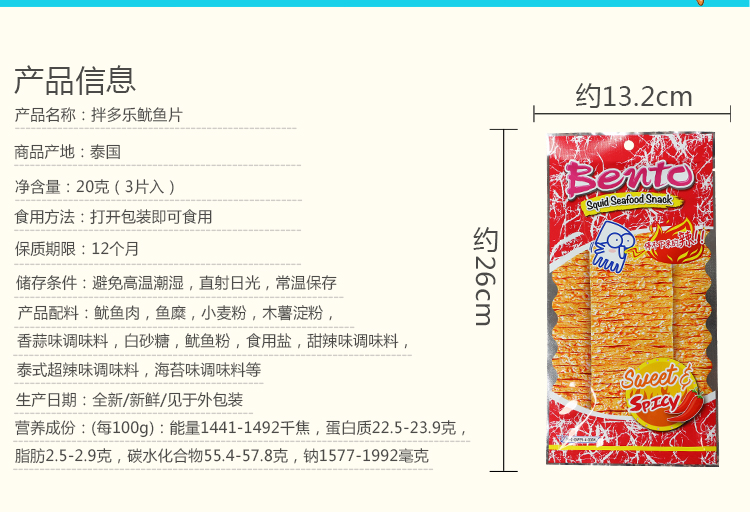 泰国进口 拌多乐甜辣/超辣味鱿鱼片20g/袋