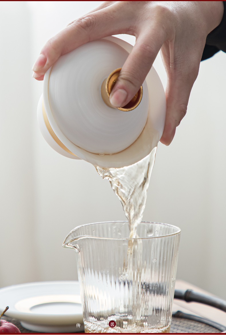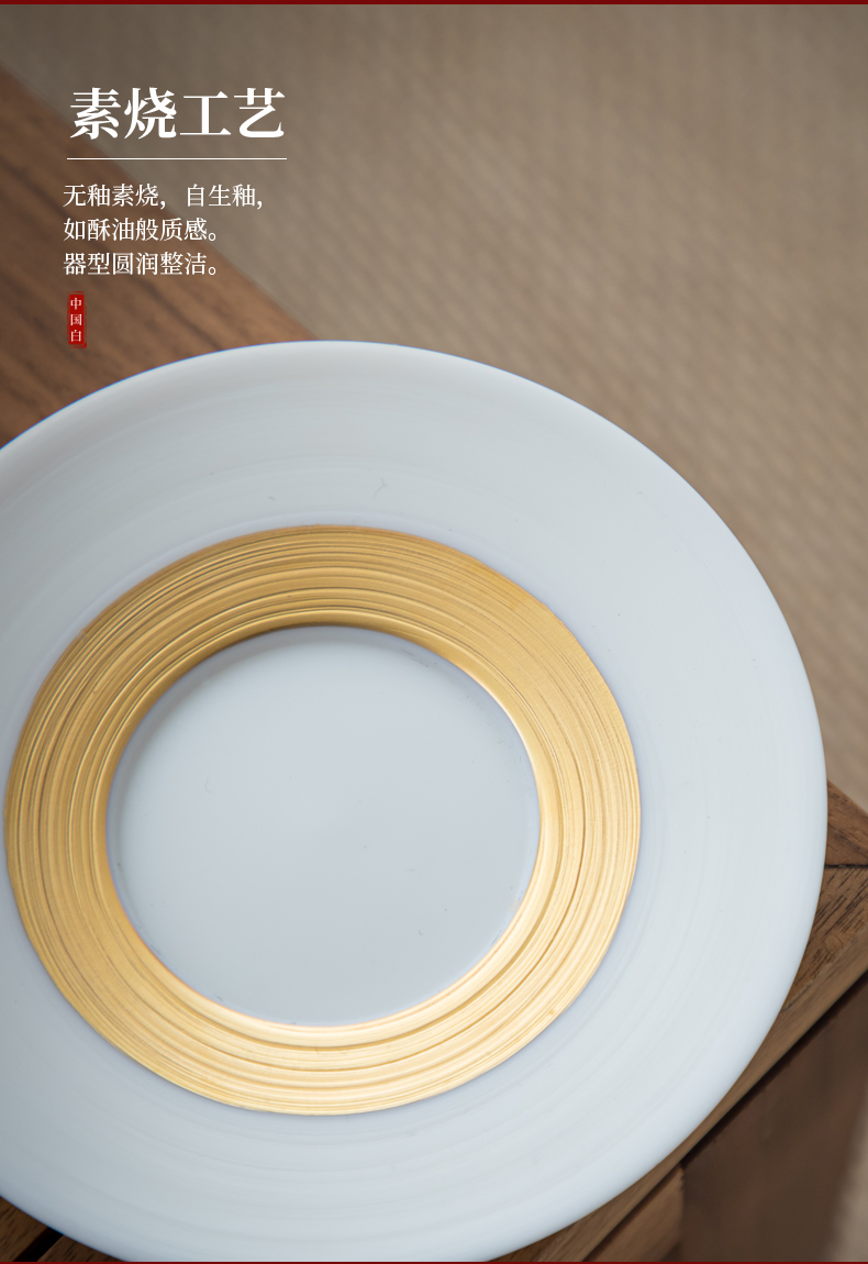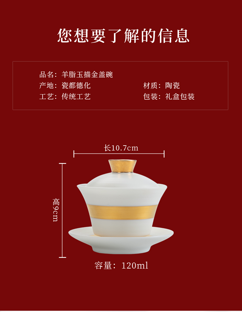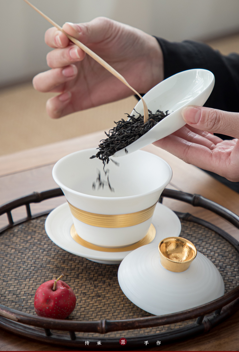 千里江山 6头+木托盘 茶具套装 手绘羊脂玉新款整套功夫茶具家用德化白瓷客厅泡茶办公室会客盖碗茶杯 茶道 茶具