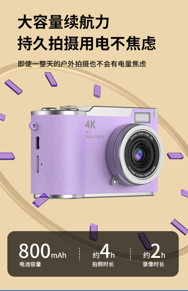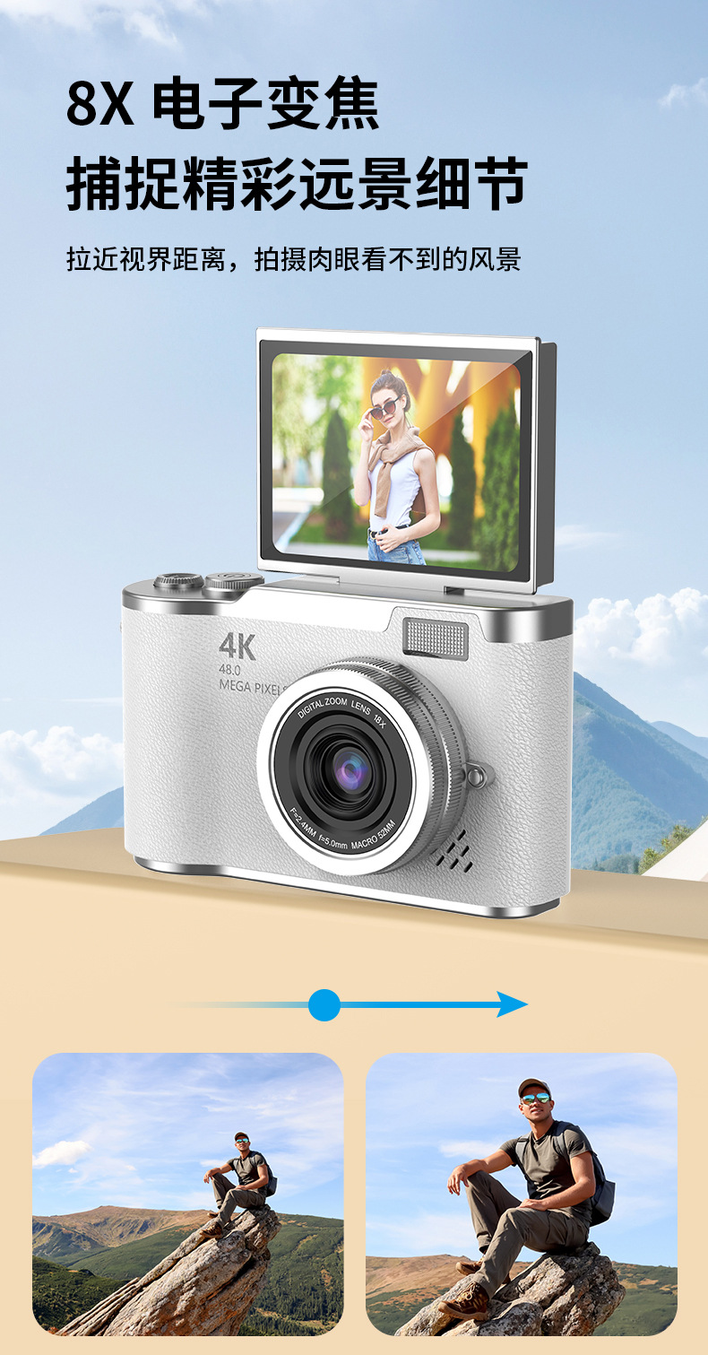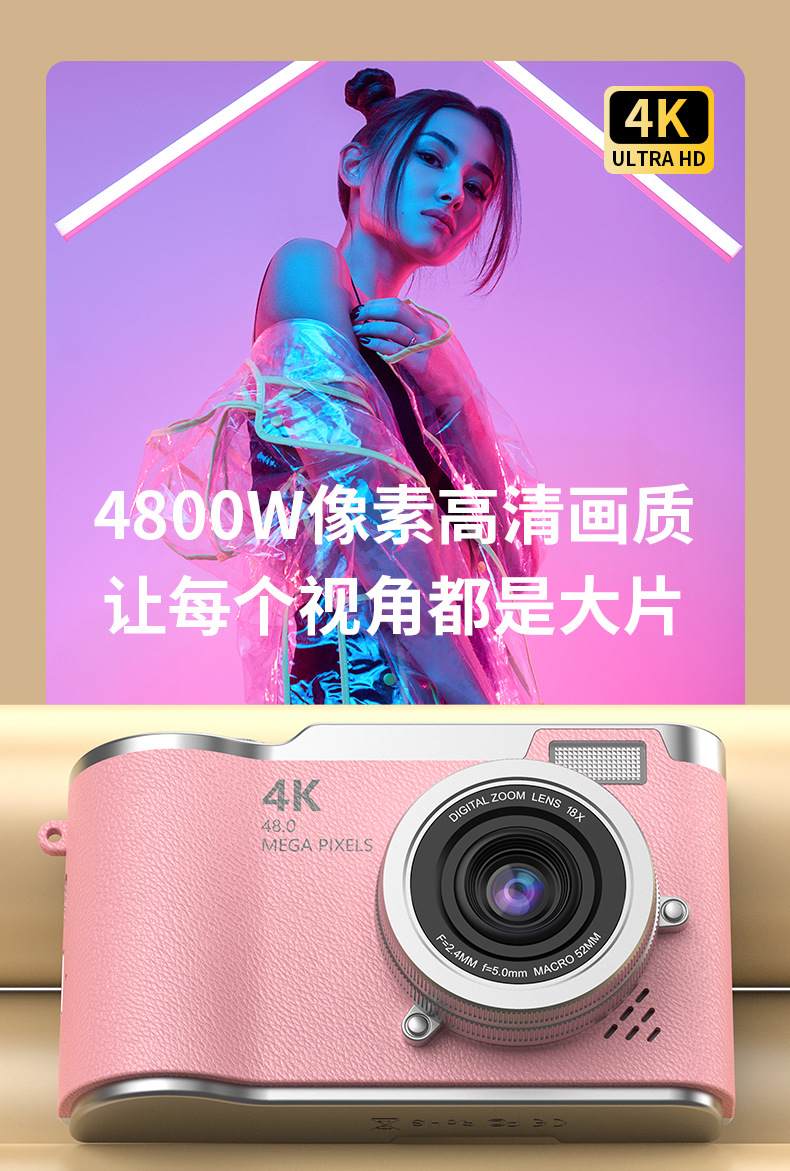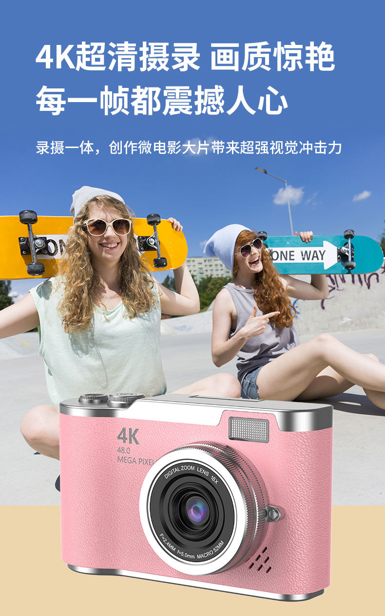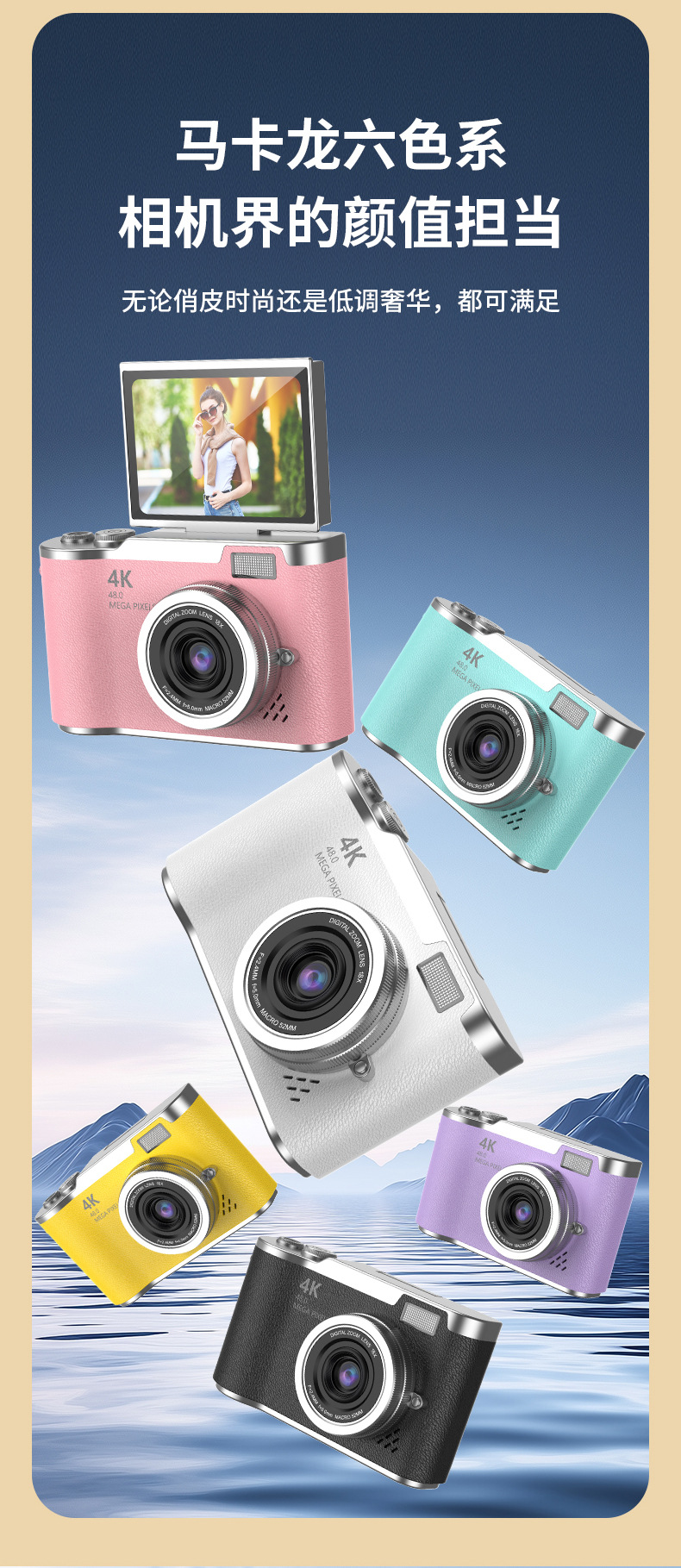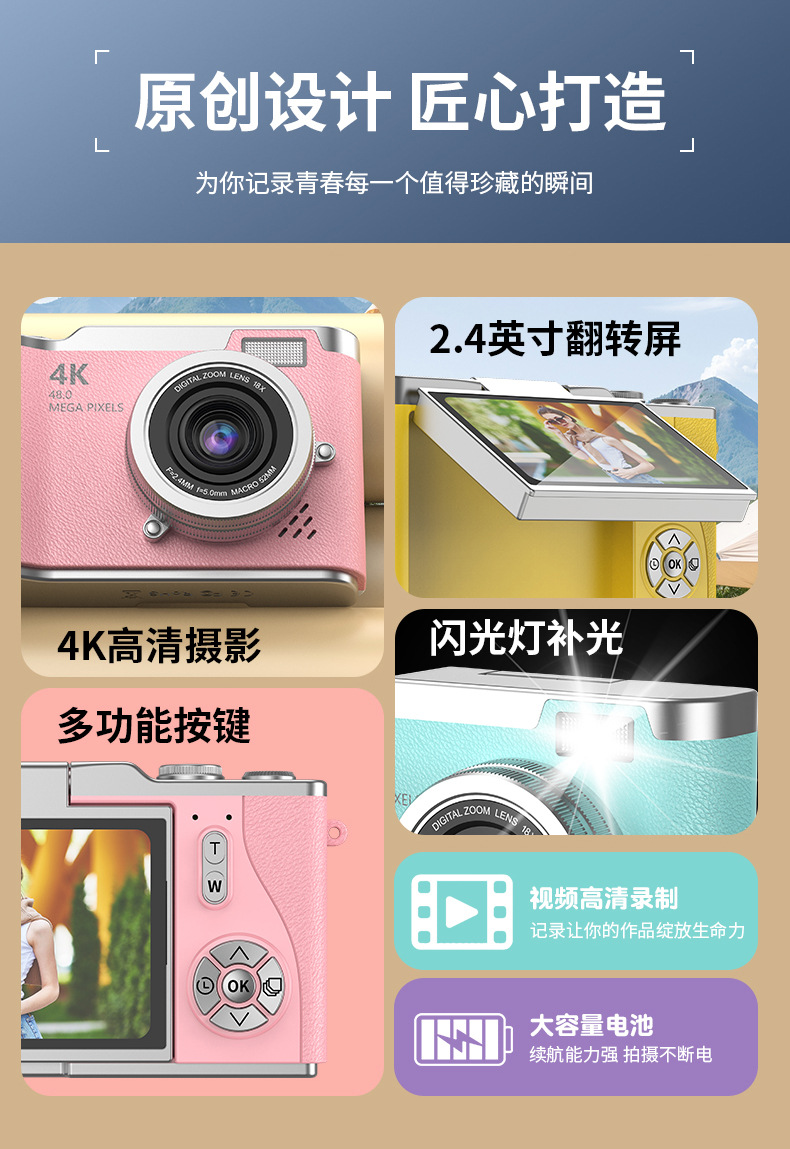 超值热卖中!CCD翻转大屏幕相机 下单赠读卡器 Type-C转接头 4800W像素 手机可读取照片 可自拍 儿童学生数码相机 可拍照打印相机