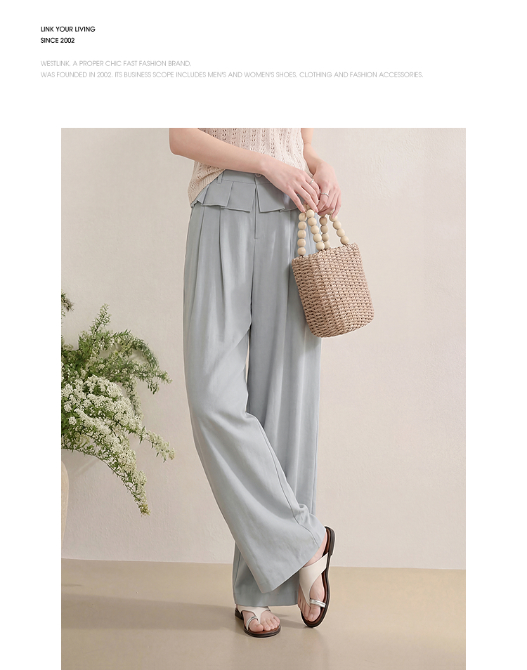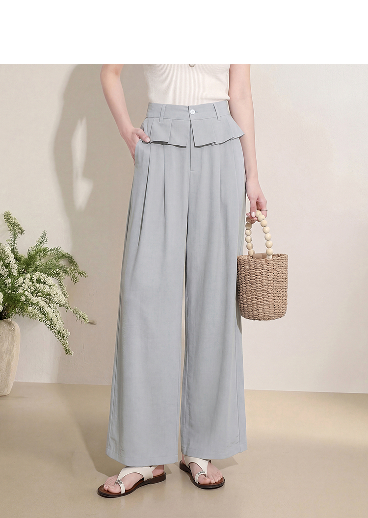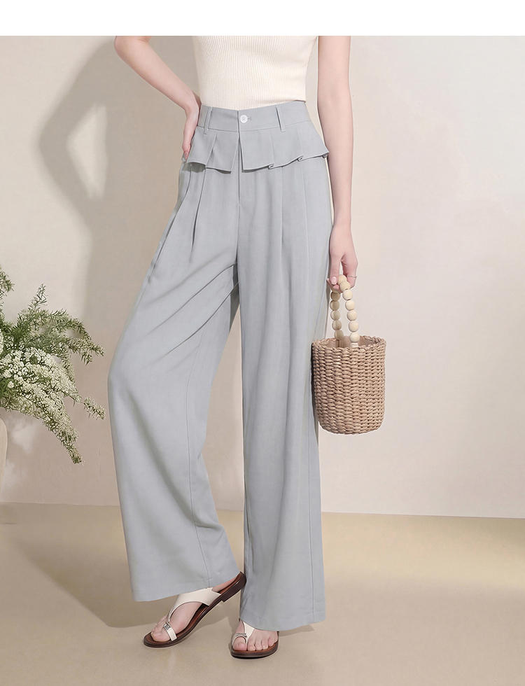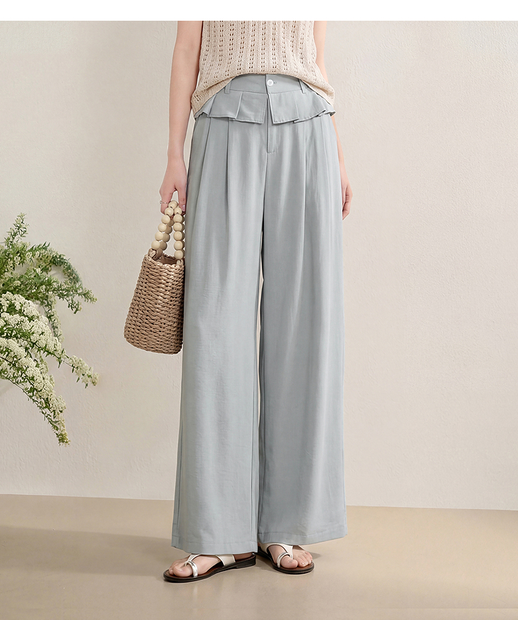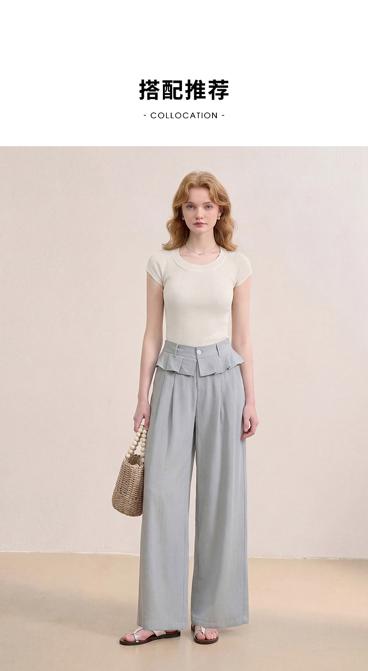 西遇花边松弛感2026年春新款设计感百褶腰头屁帘裤休闲女阔腿长裤H0060210