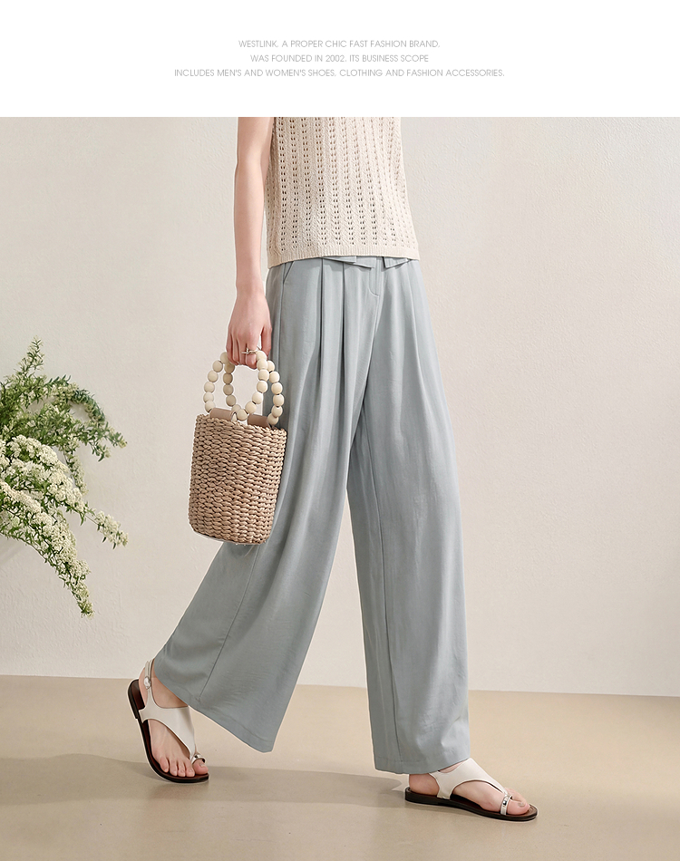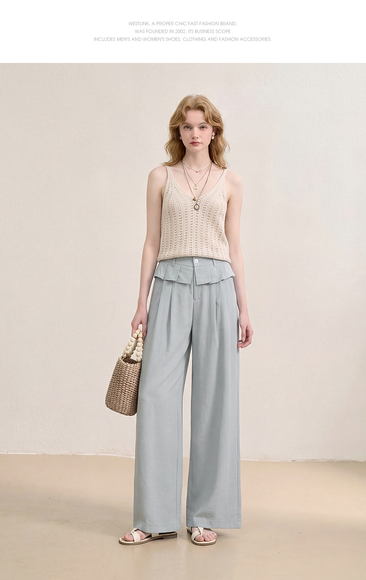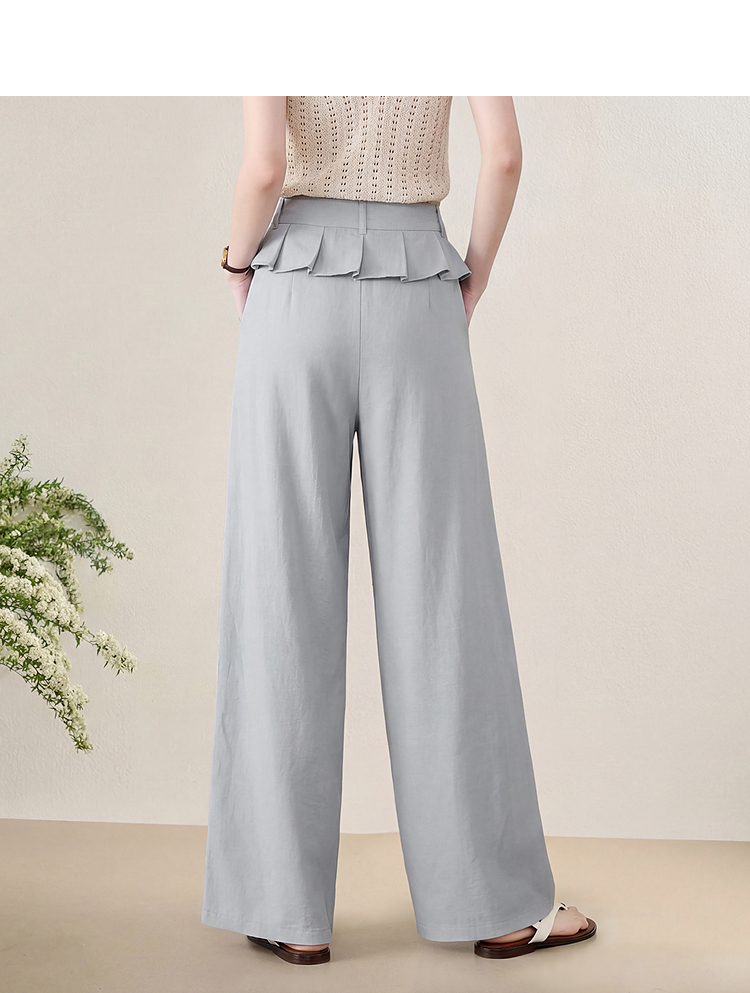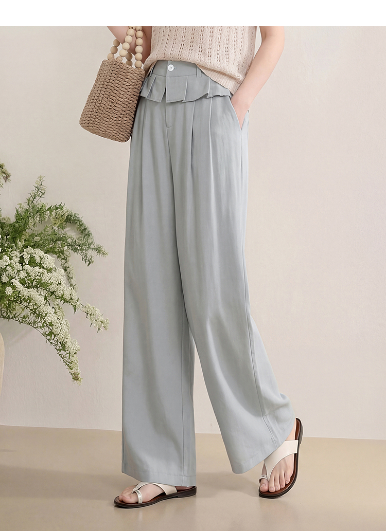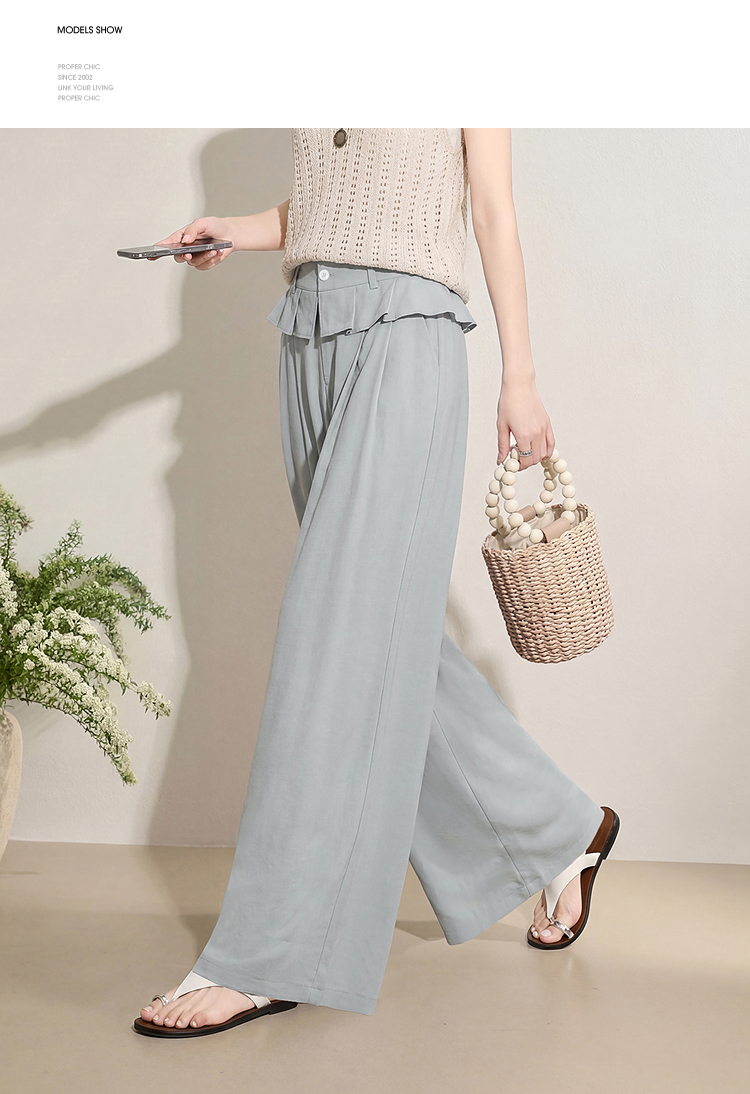 西遇花边松弛感2026年春新款设计感百褶腰头屁帘裤休闲女阔腿长裤H0060210