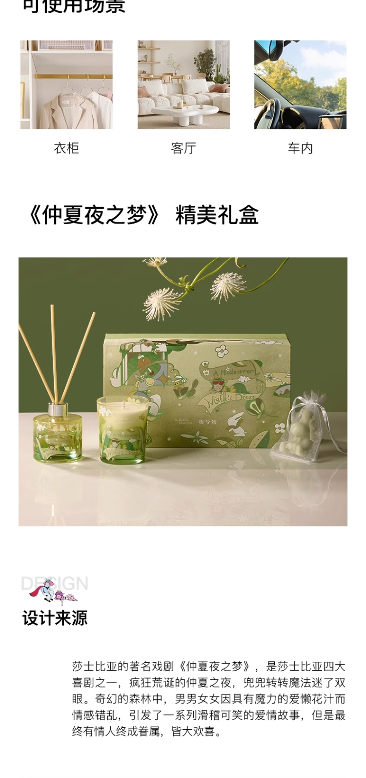 大英博物馆莎士比亚系列 仲夏夜之梦造型蜡无火香熏蜡烛香氛礼盒