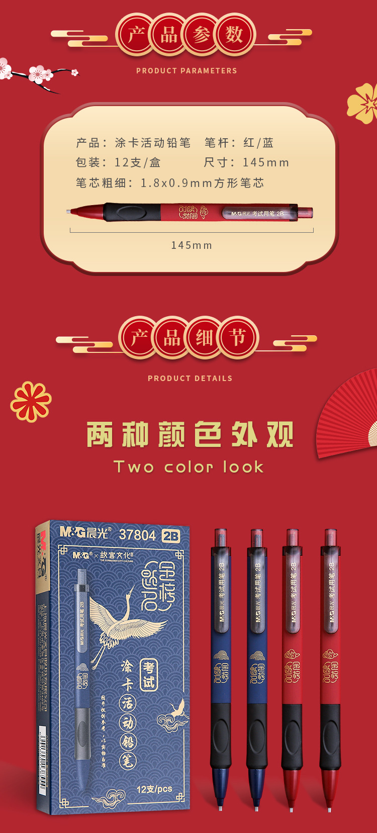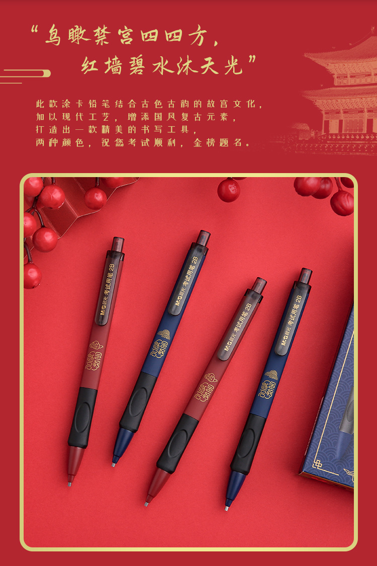 【买1送1!颜色随机】晨光文具AMP37804 故宫金榜题名2B涂卡铅笔 学生电脑考试用 活动铅笔