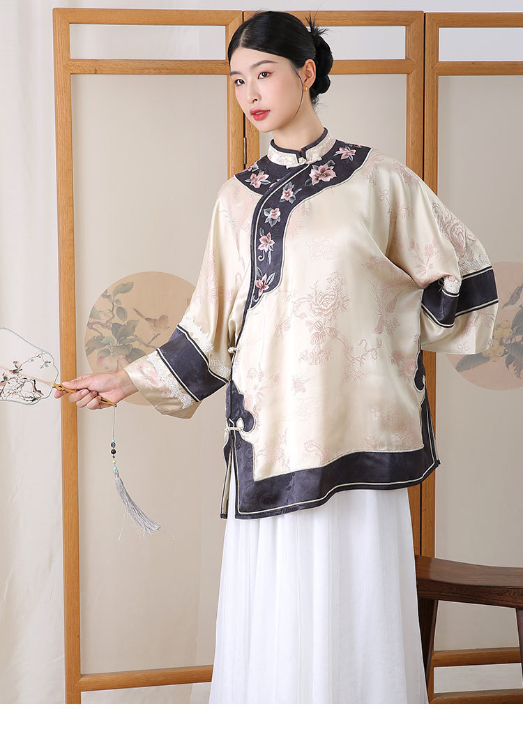 致橡树2024早秋新款女装人丝提花绣花二大衫上衣B241140-T 商品图3