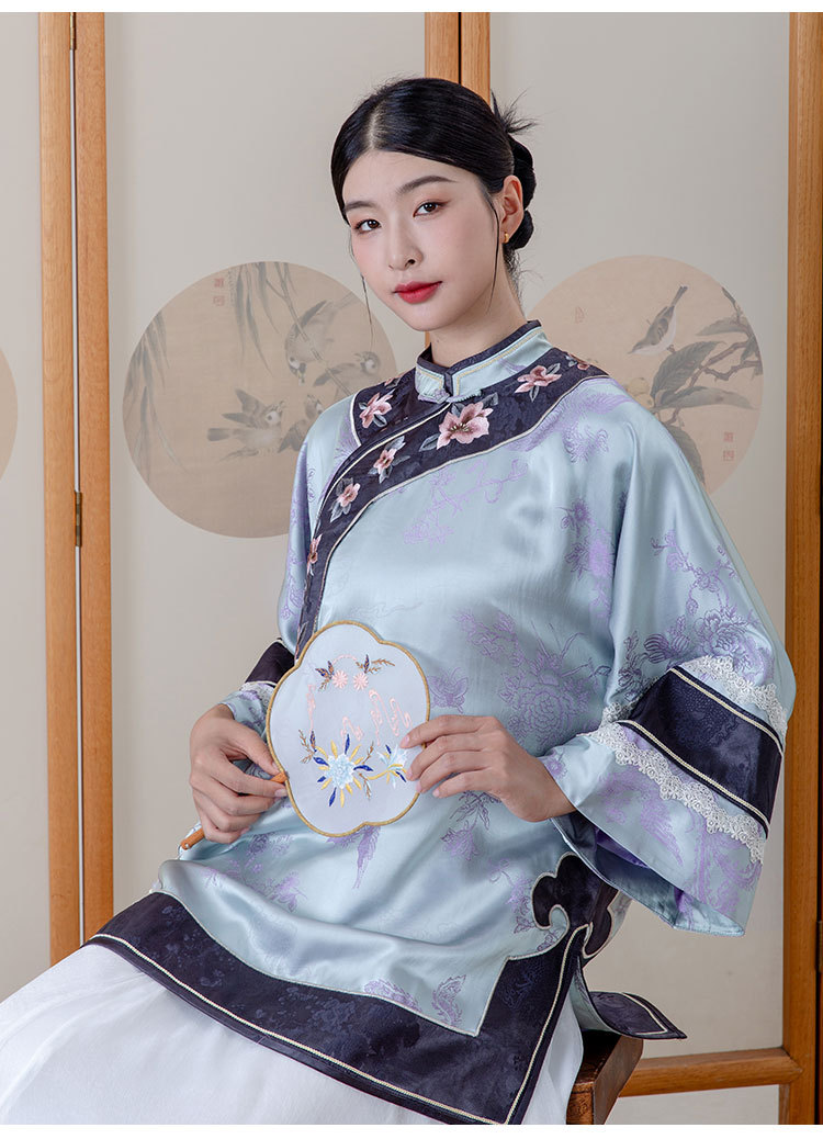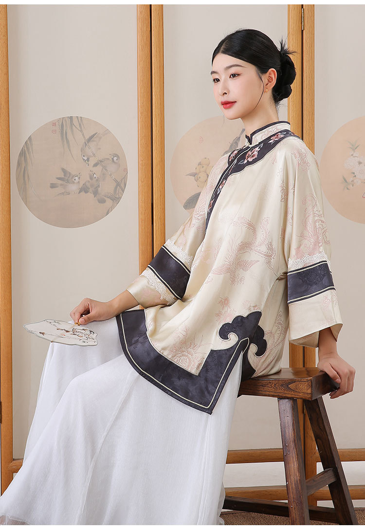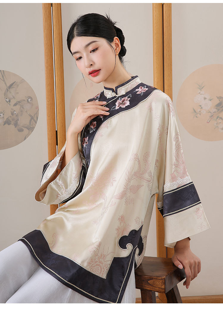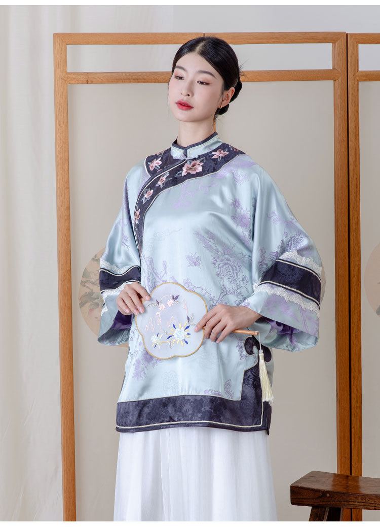 致橡树2024早秋新款女装人丝提花绣花二大衫上衣B241140-T 商品图0