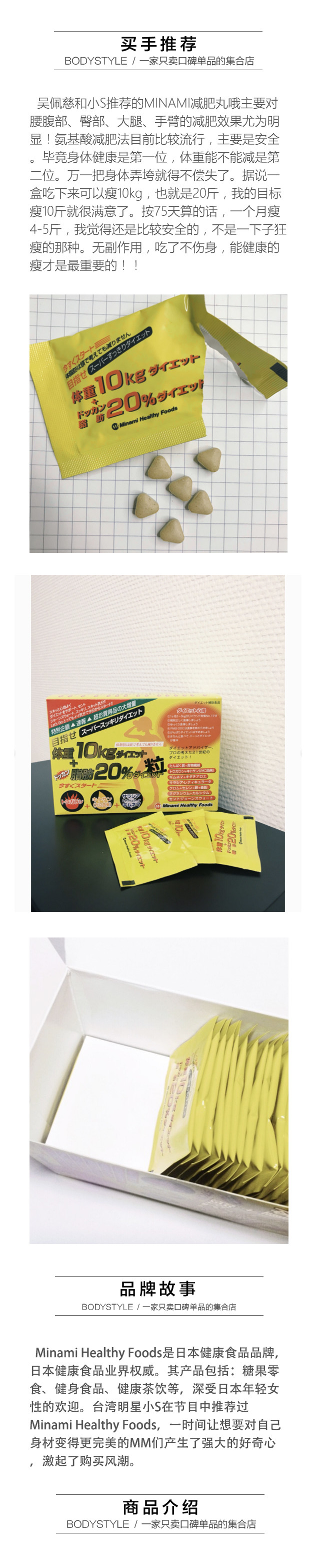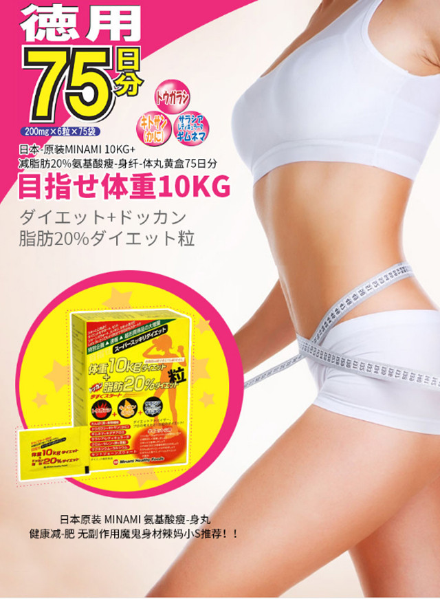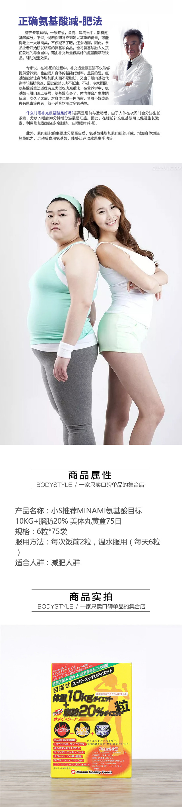 【限时折扣】小S推荐MINAMI氨基酸目标10KG+脂肪20% 美体丸黄盒75日