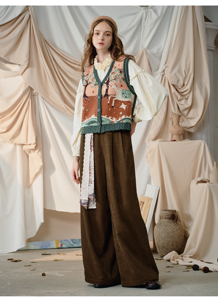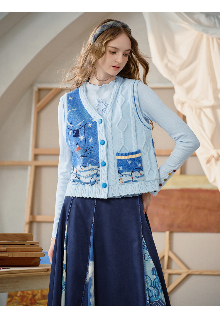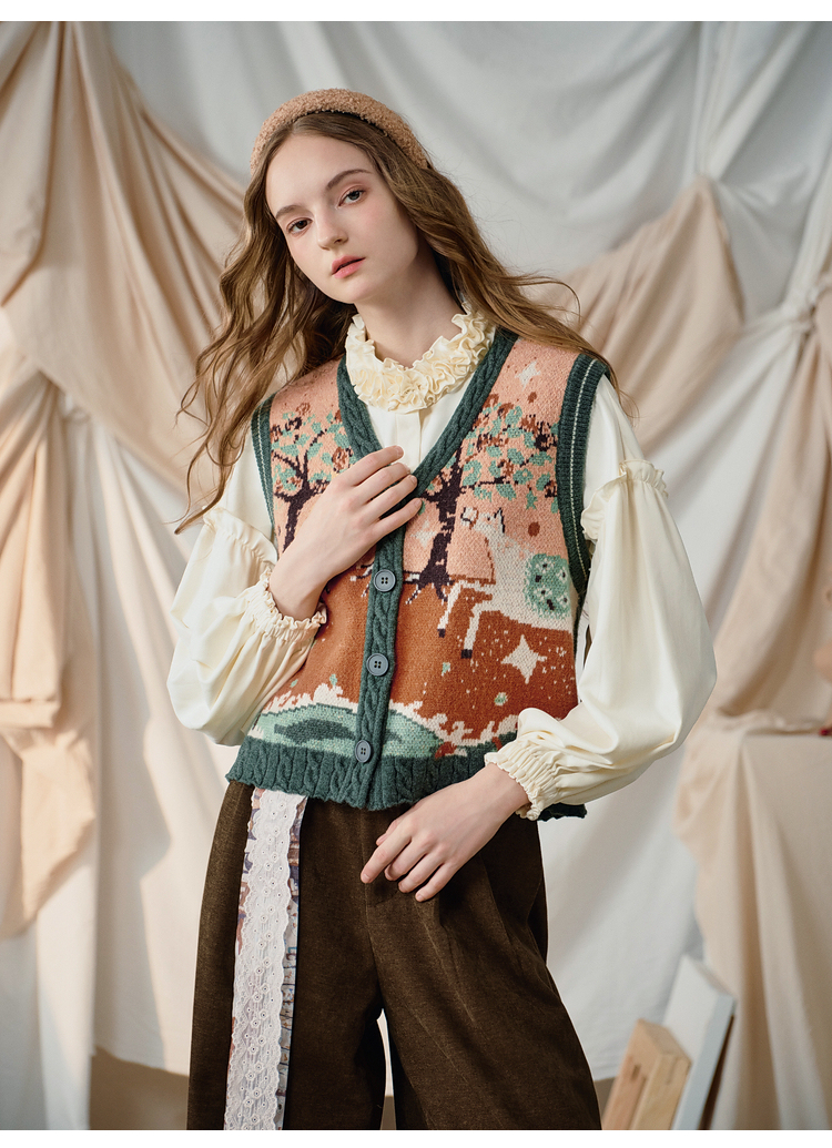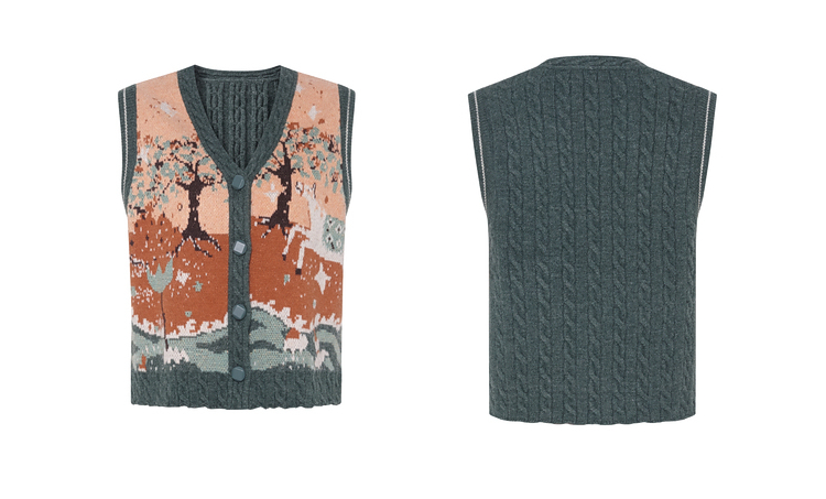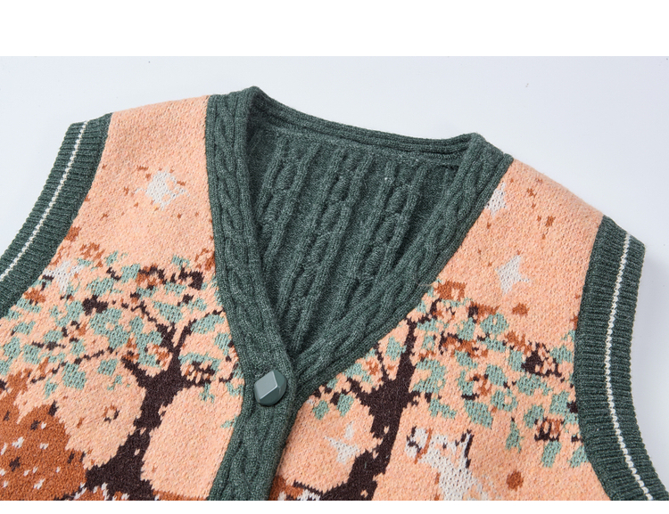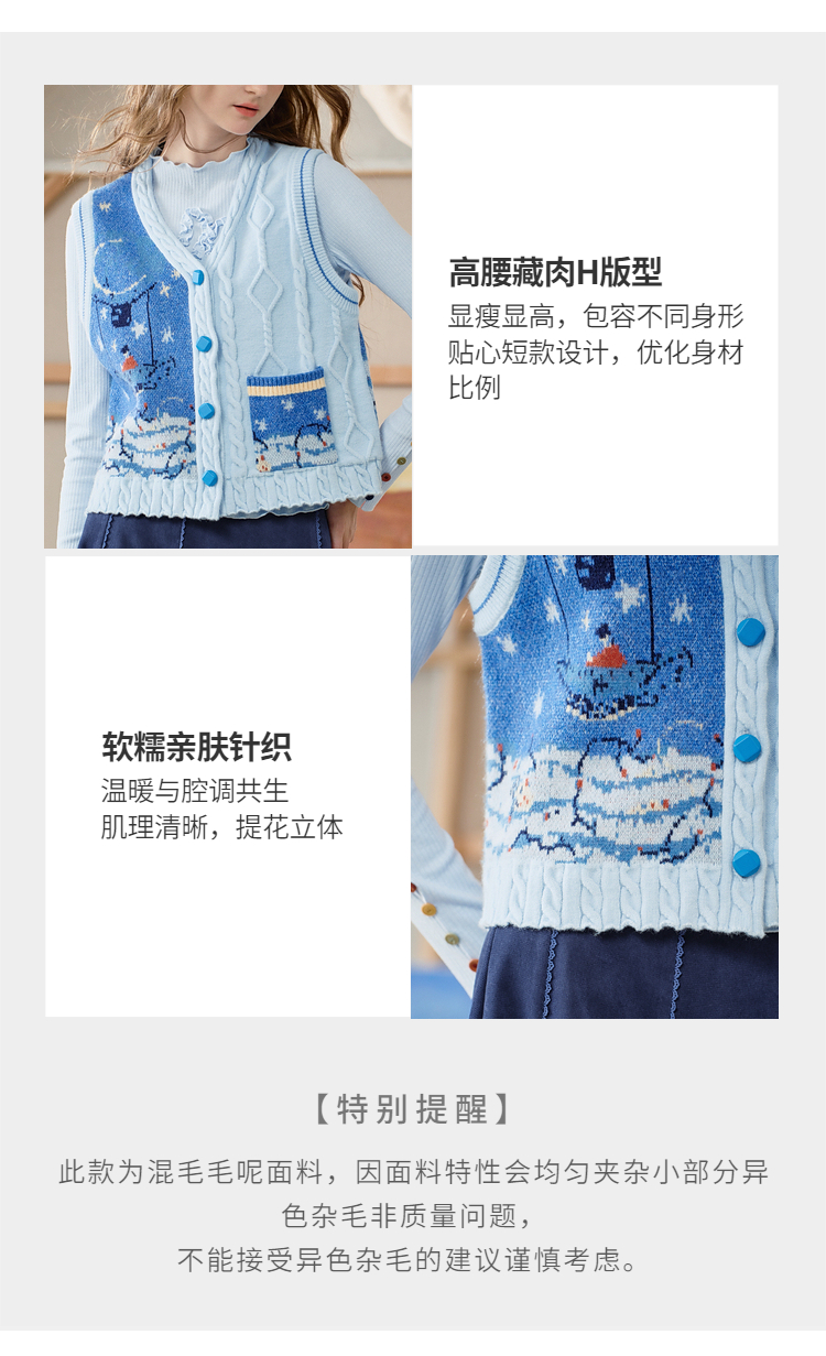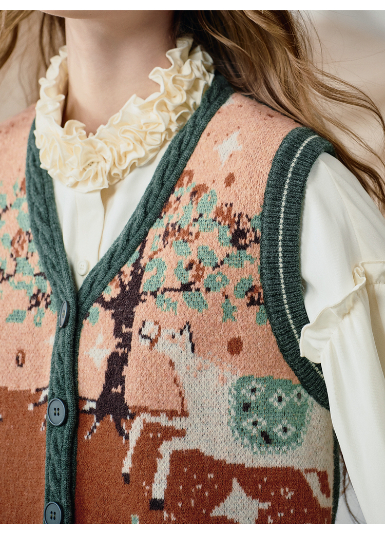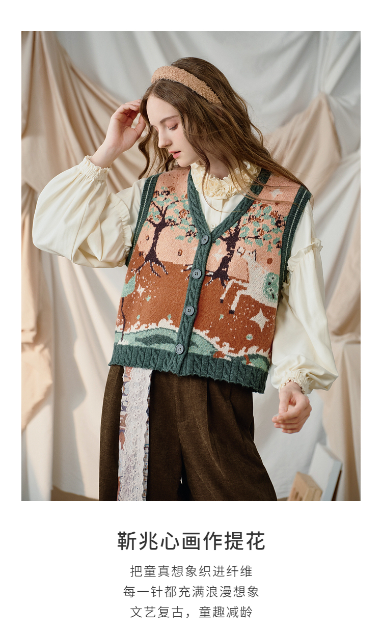 两三事 童话裁片 2025秋季新款复古提花无袖针织开衫女宽松