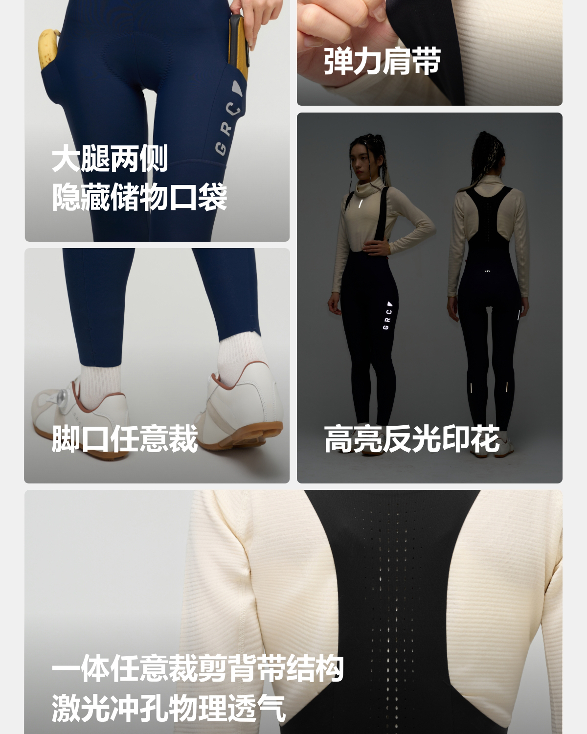 GRC桀骜无尽秋冬新款TECH系列反光抓绒公路背带骑行裤长裤女