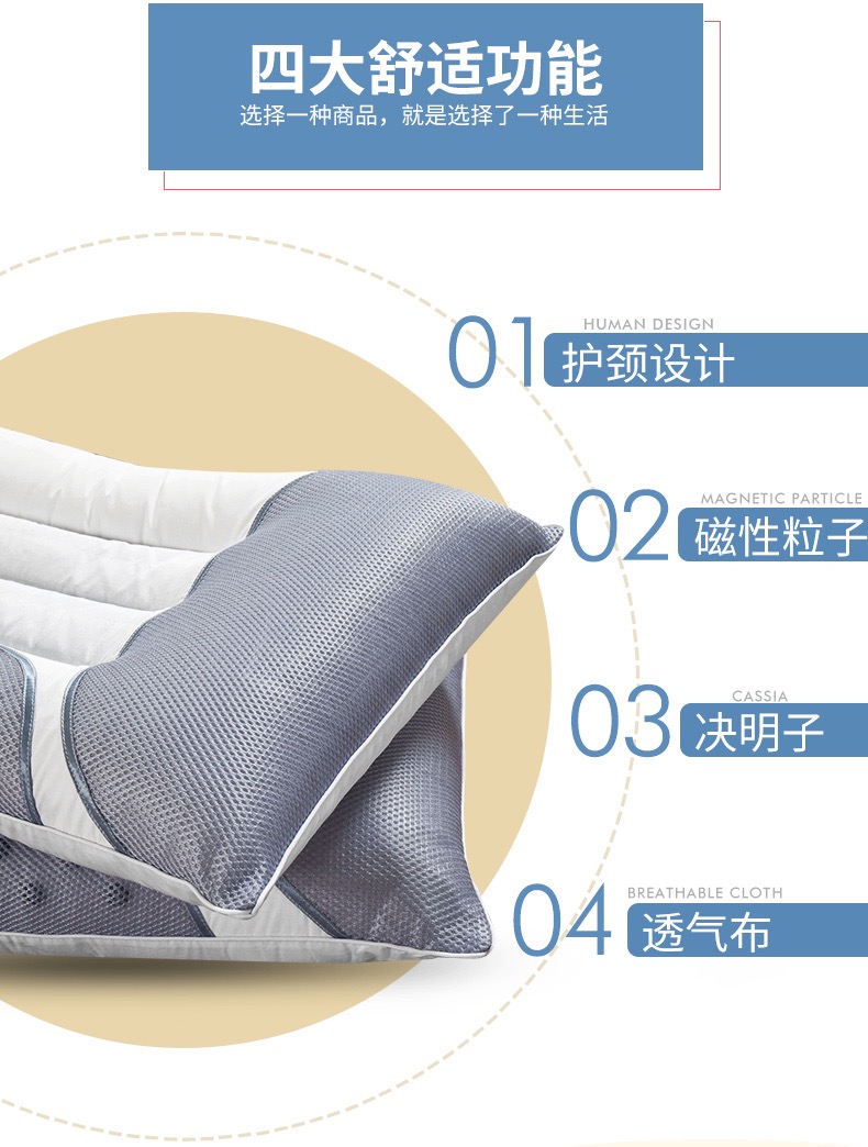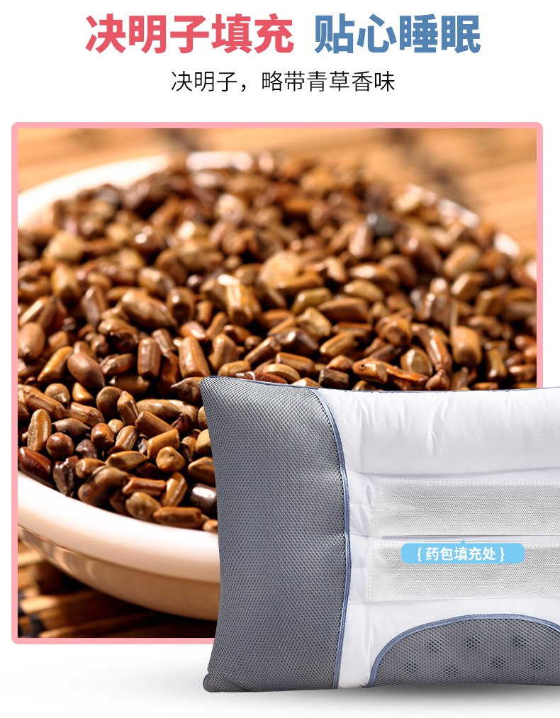 自然醒全棉决明子立体枕芯48*74*10cm磁疗枕头家用睡眠枕护颈椎枕SXM
