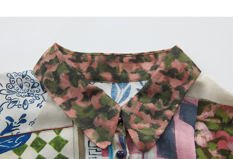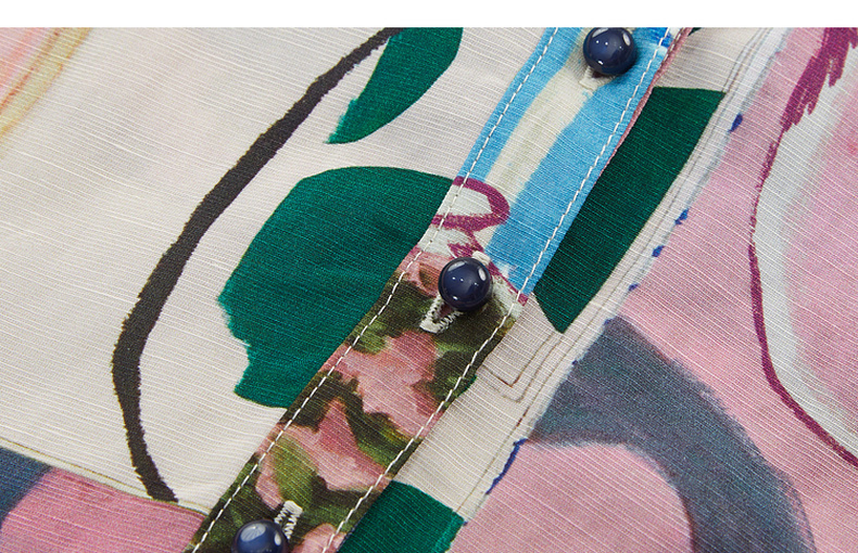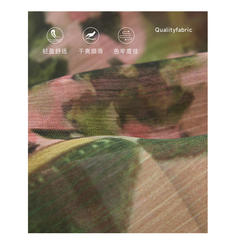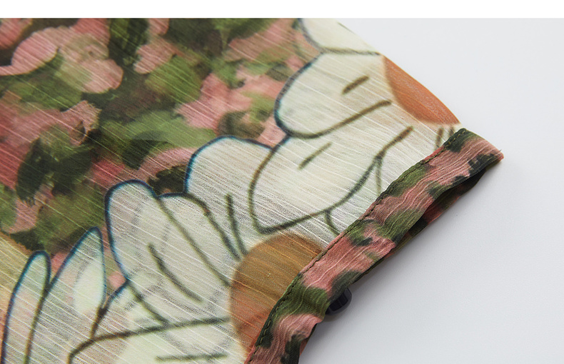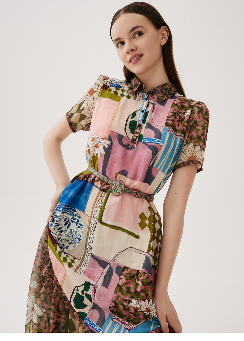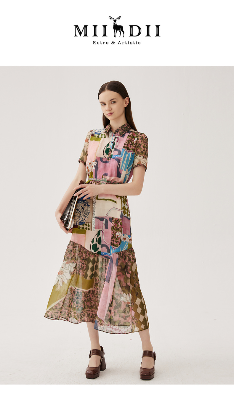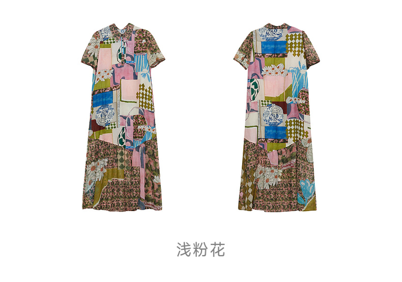 谜底印花连衣裙短袖女2024夏季款复古田园风长裙配腰带247ML5010
