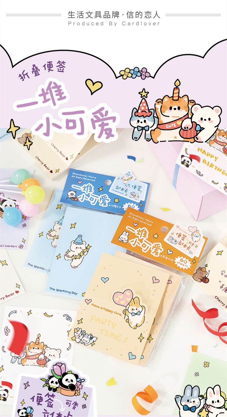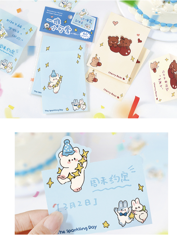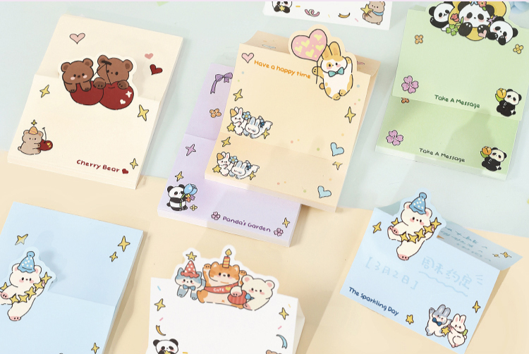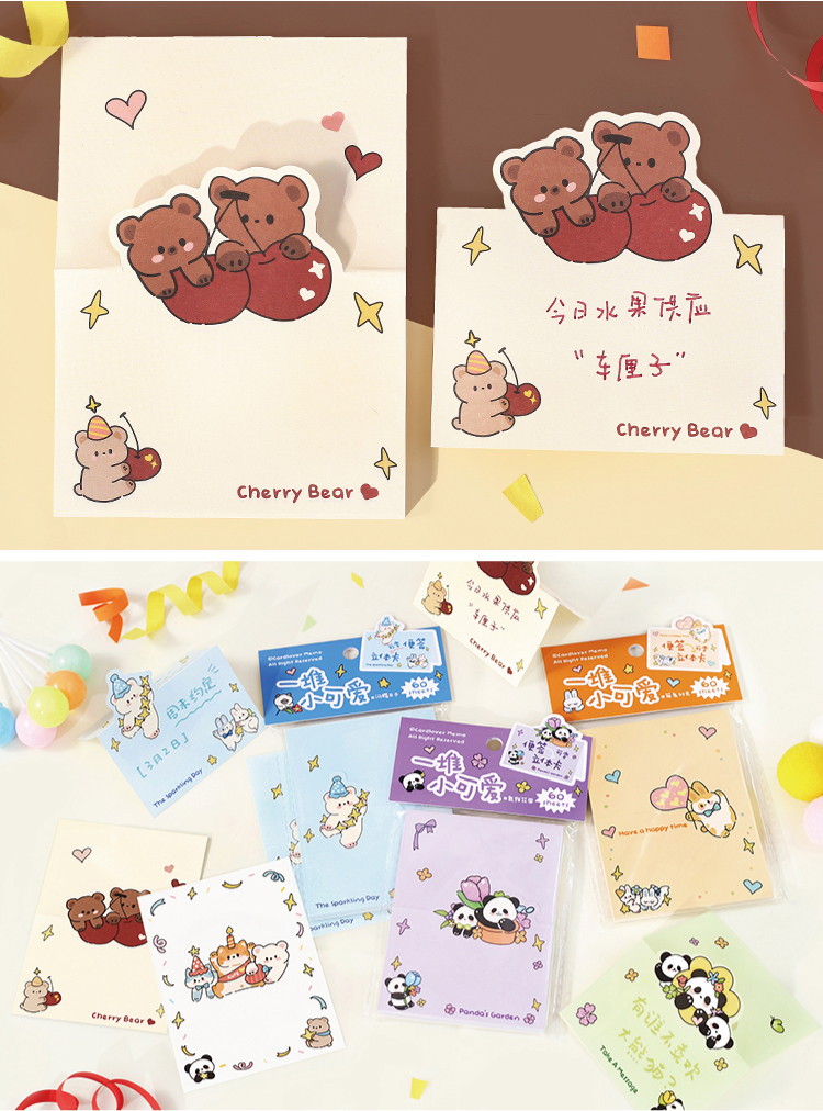 一堆小可爱折叠便签本信的恋人动物熊猫兔手帐拼贴素材纸记事留言本