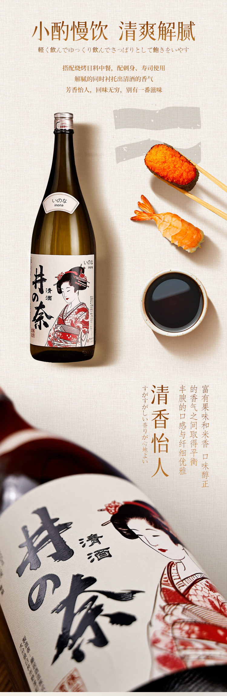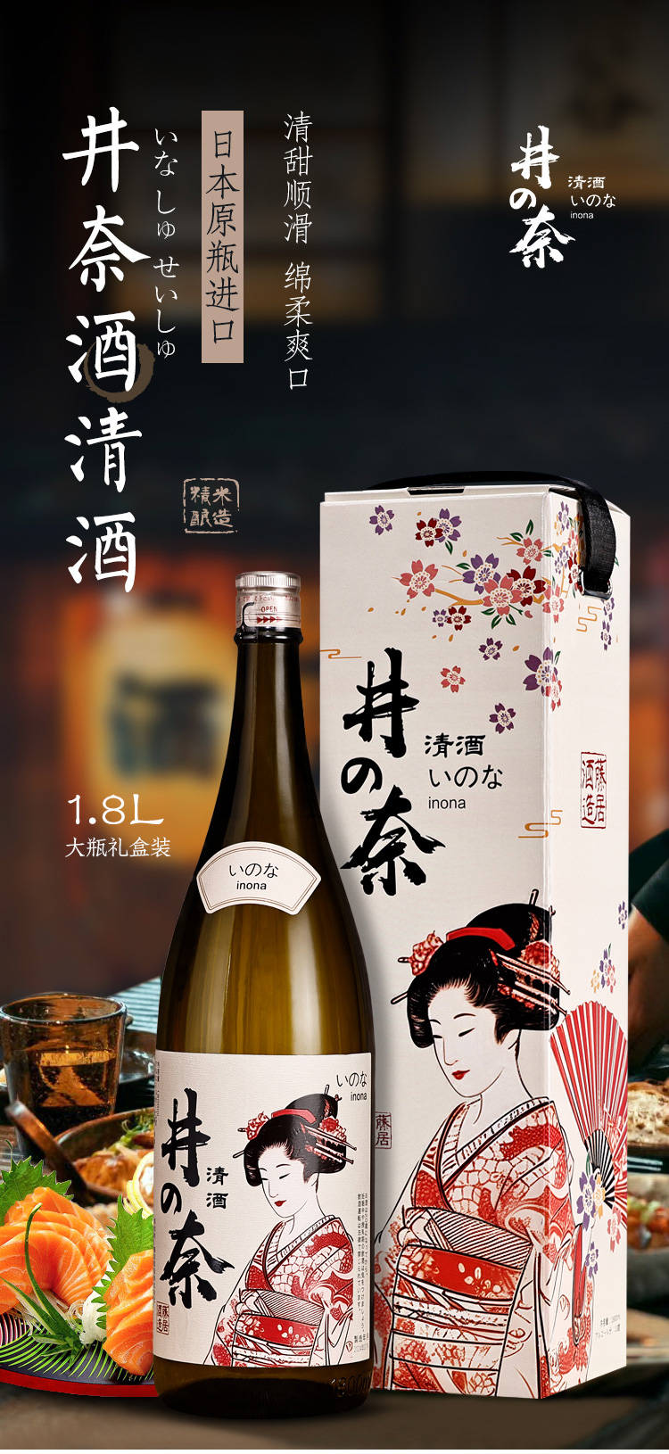 【井奈清酒】 13%vol 清甜顺滑 绵柔爽口 日本原瓶进口 1800ml/瓶