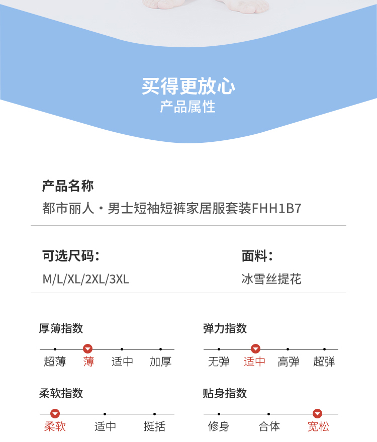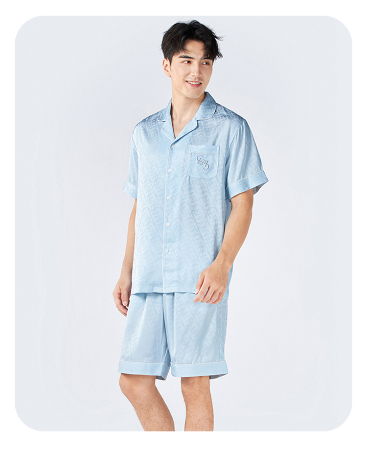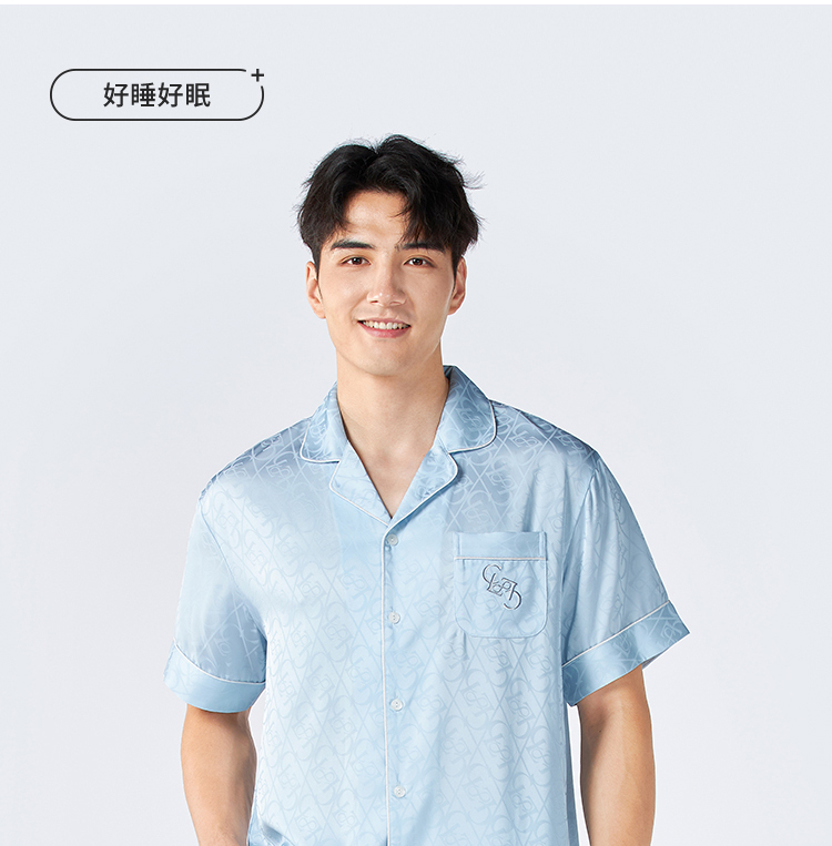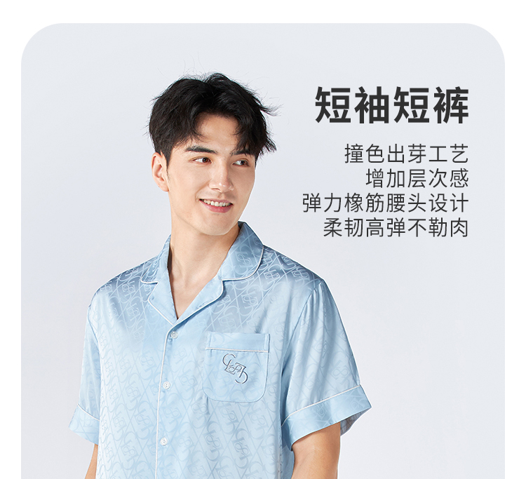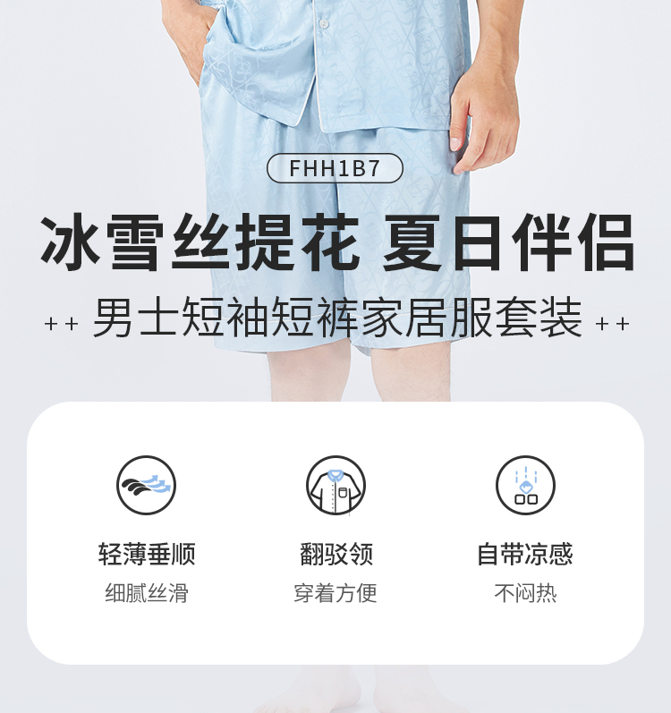 都市丽人男士丝质套装薄冰雪丝提花好睡好眠短袖类FHH1B7
