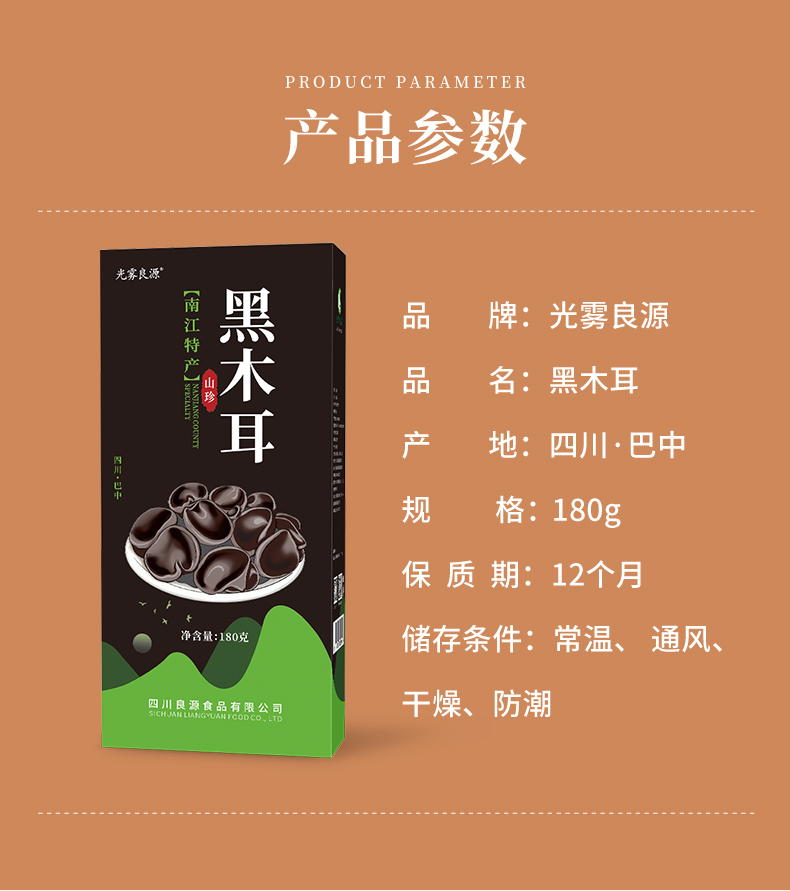 【推荐】光雾良源 四川巴中精选黑木耳180g盒装