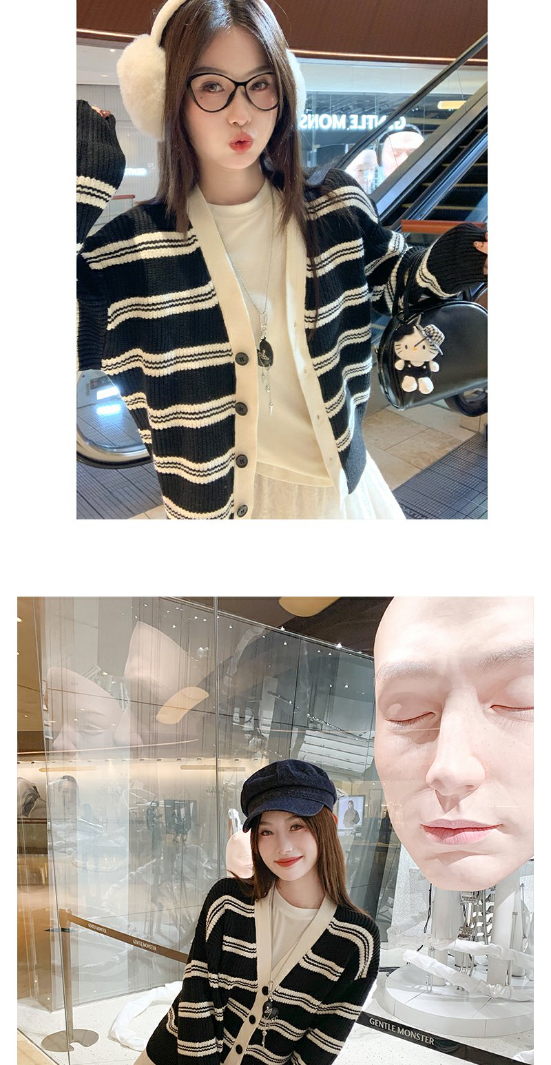 【169元任选2件】现货!黑色条纹毛衣开衫