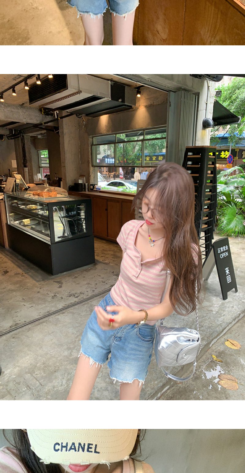 <曾小咸推荐>【美式甜心】粉色条纹短袖