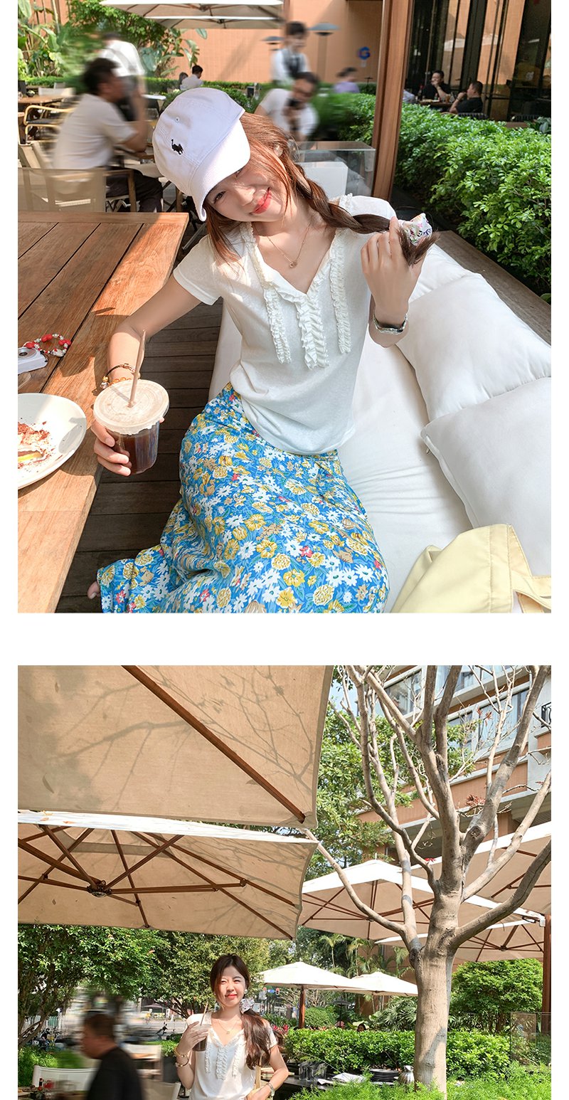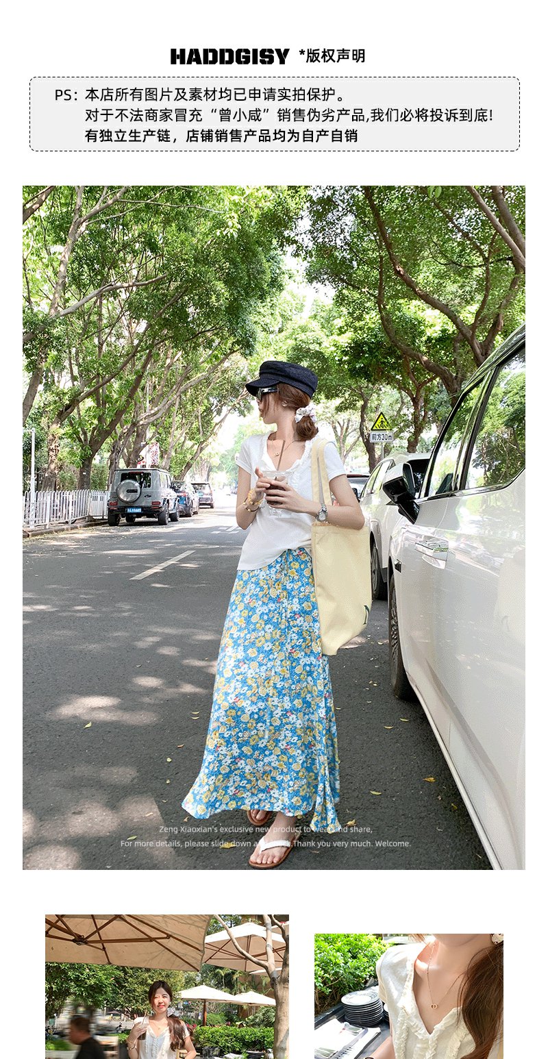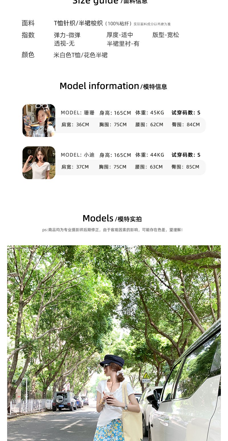 <曾小咸推荐>木耳边V领短袖+碎花半身裙套装