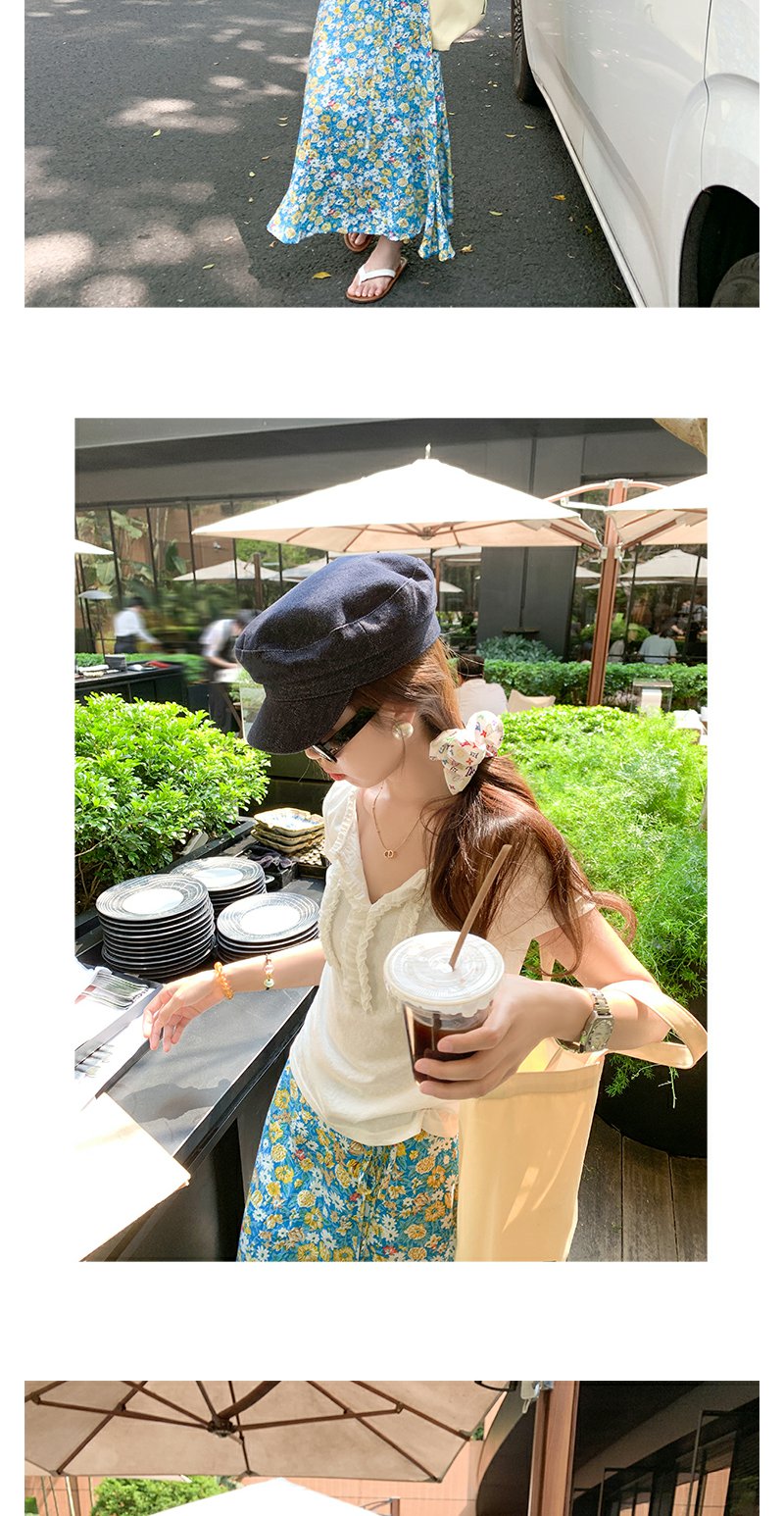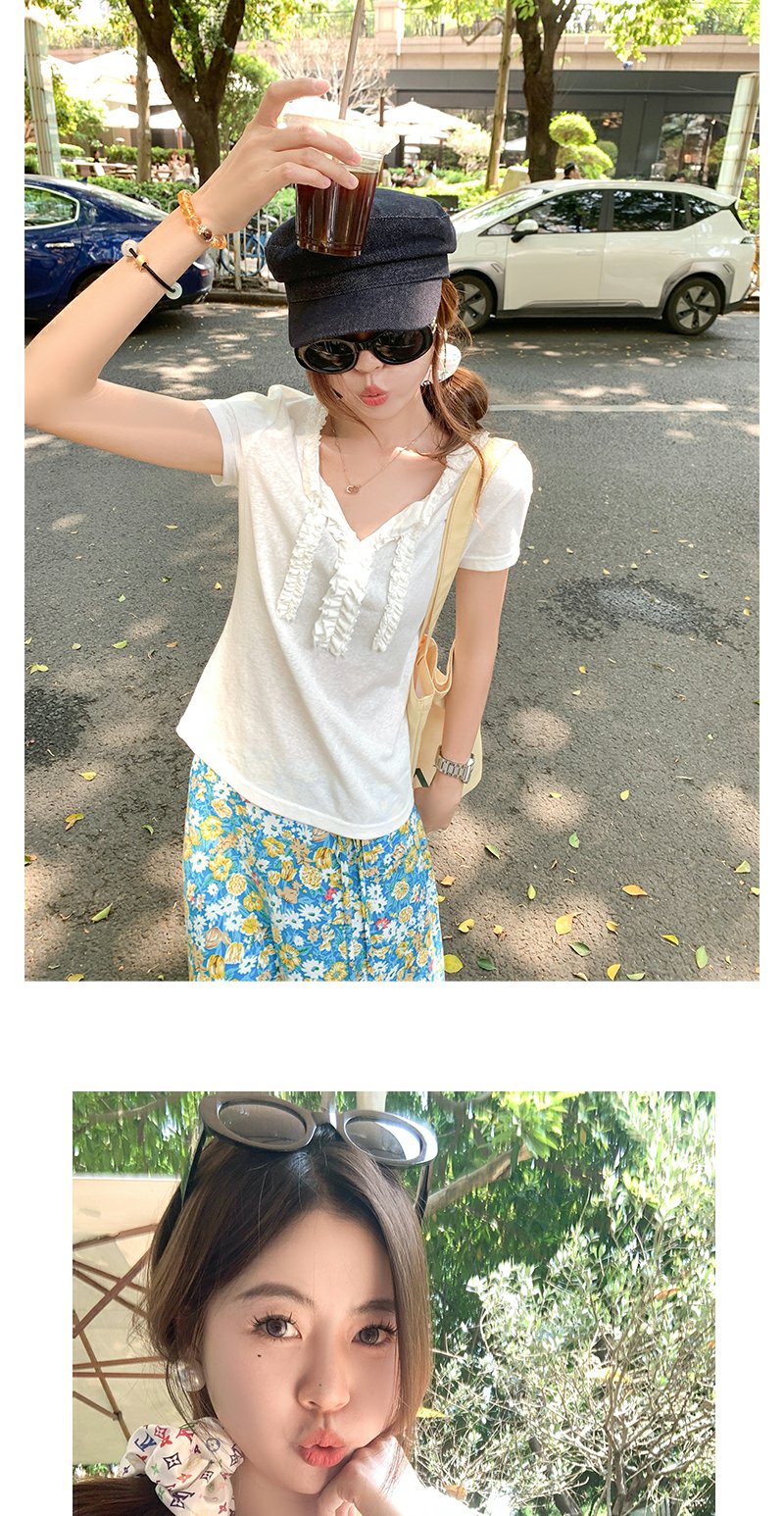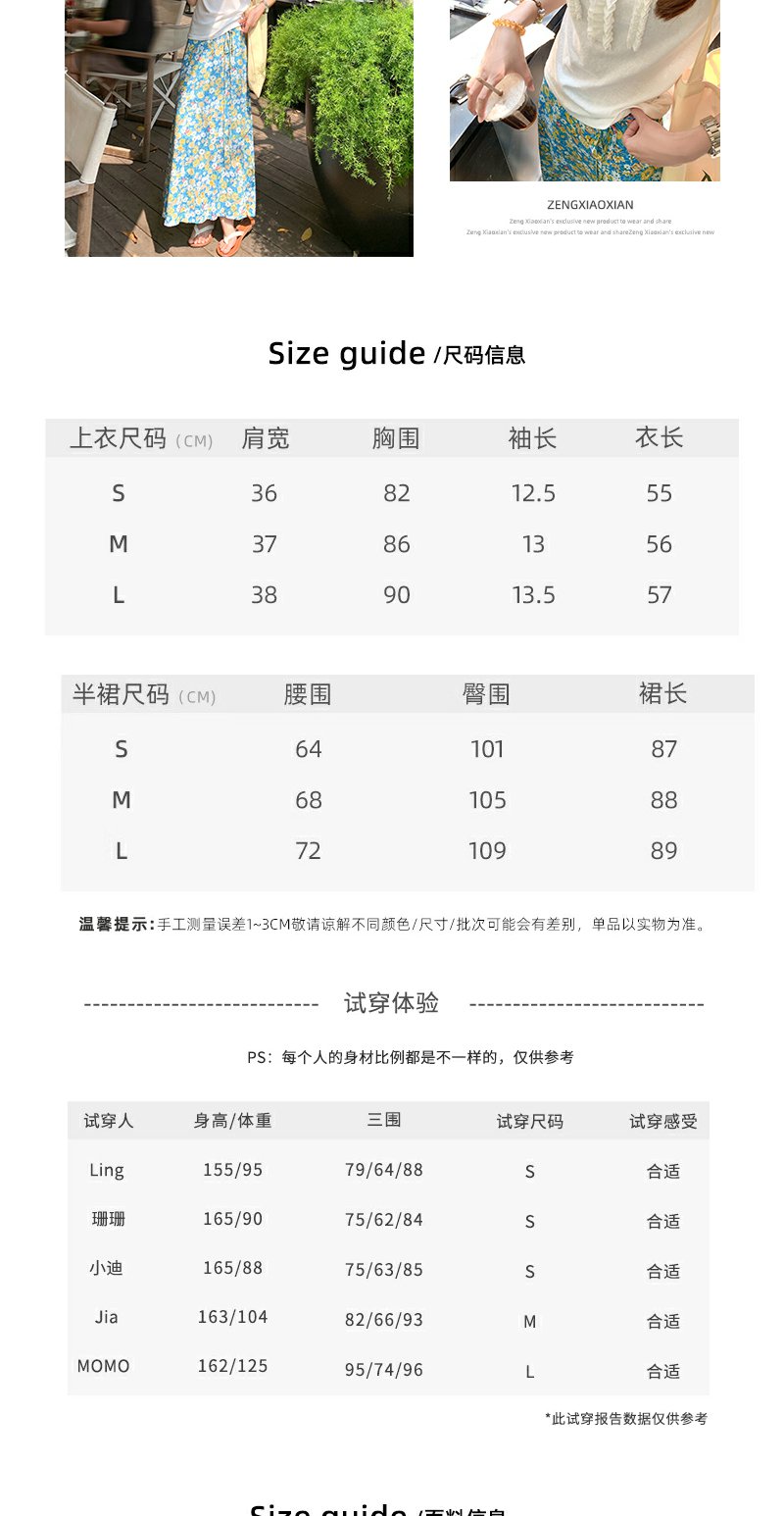 <曾小咸推荐>木耳边V领短袖+碎花半身裙套装
