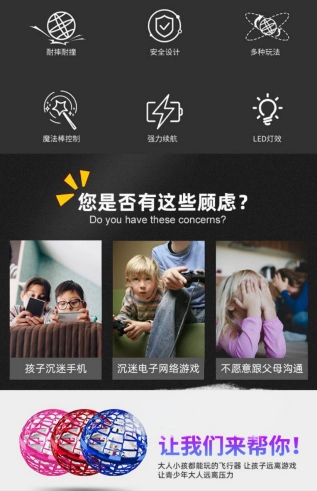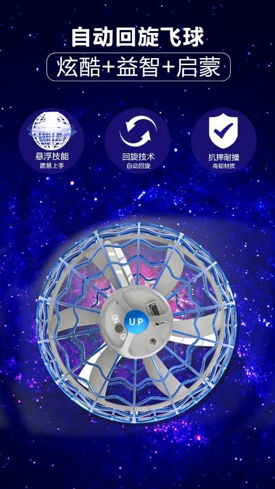 超酷炫光飞行魔球!悬浮掌心!自动返航!原地起飞!自己玩或者和小伙伴一起玩都超有趣!