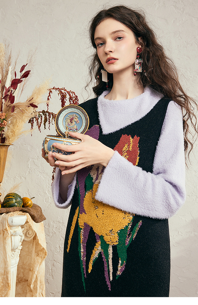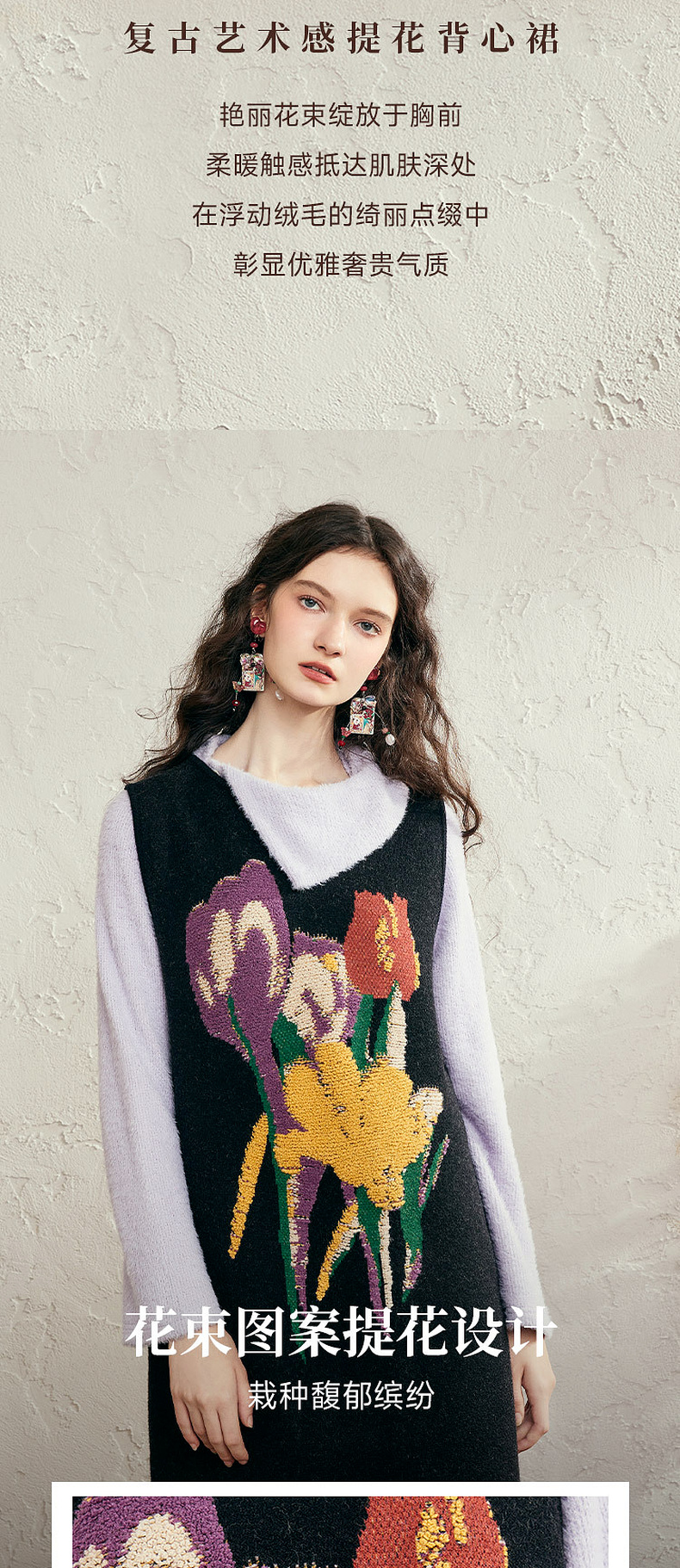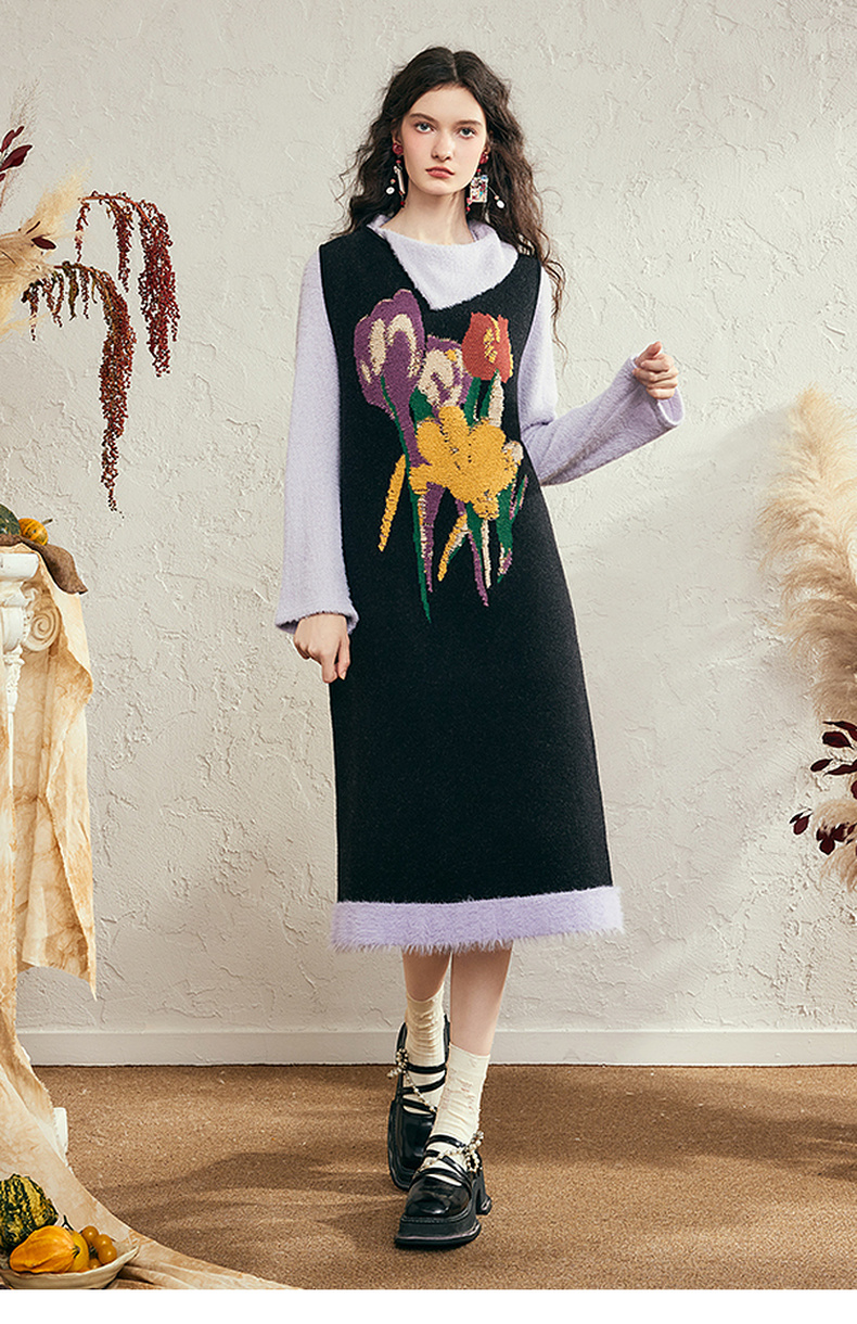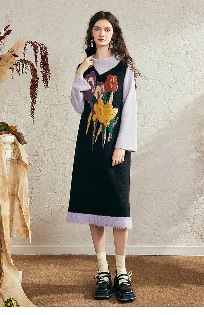两三事 独美娇花 2024秋季新款复古花卉毛巾绣无袖背心裙连衣裙