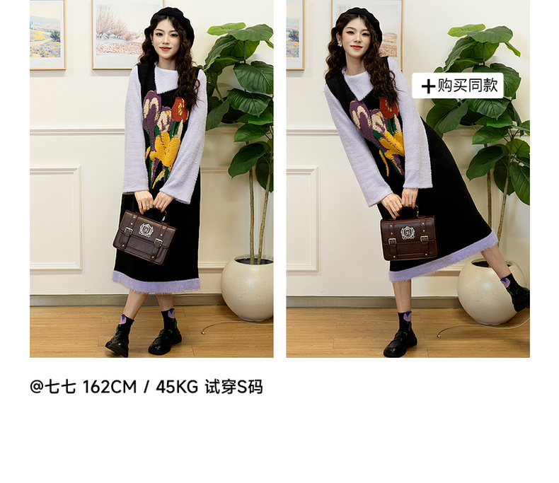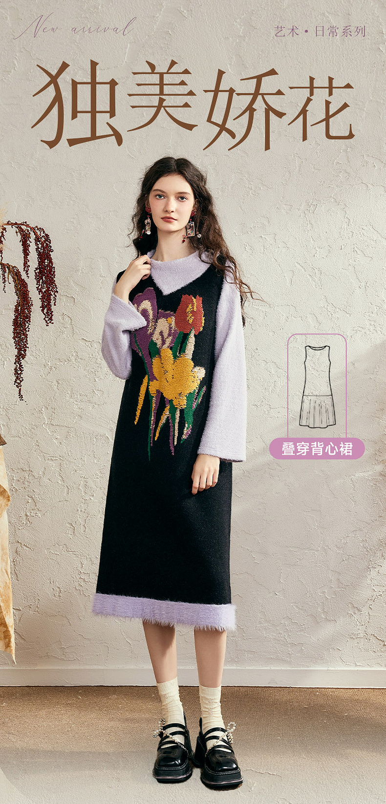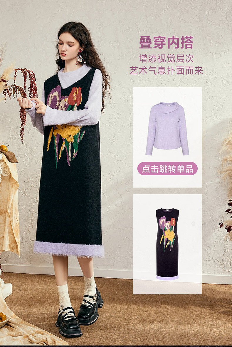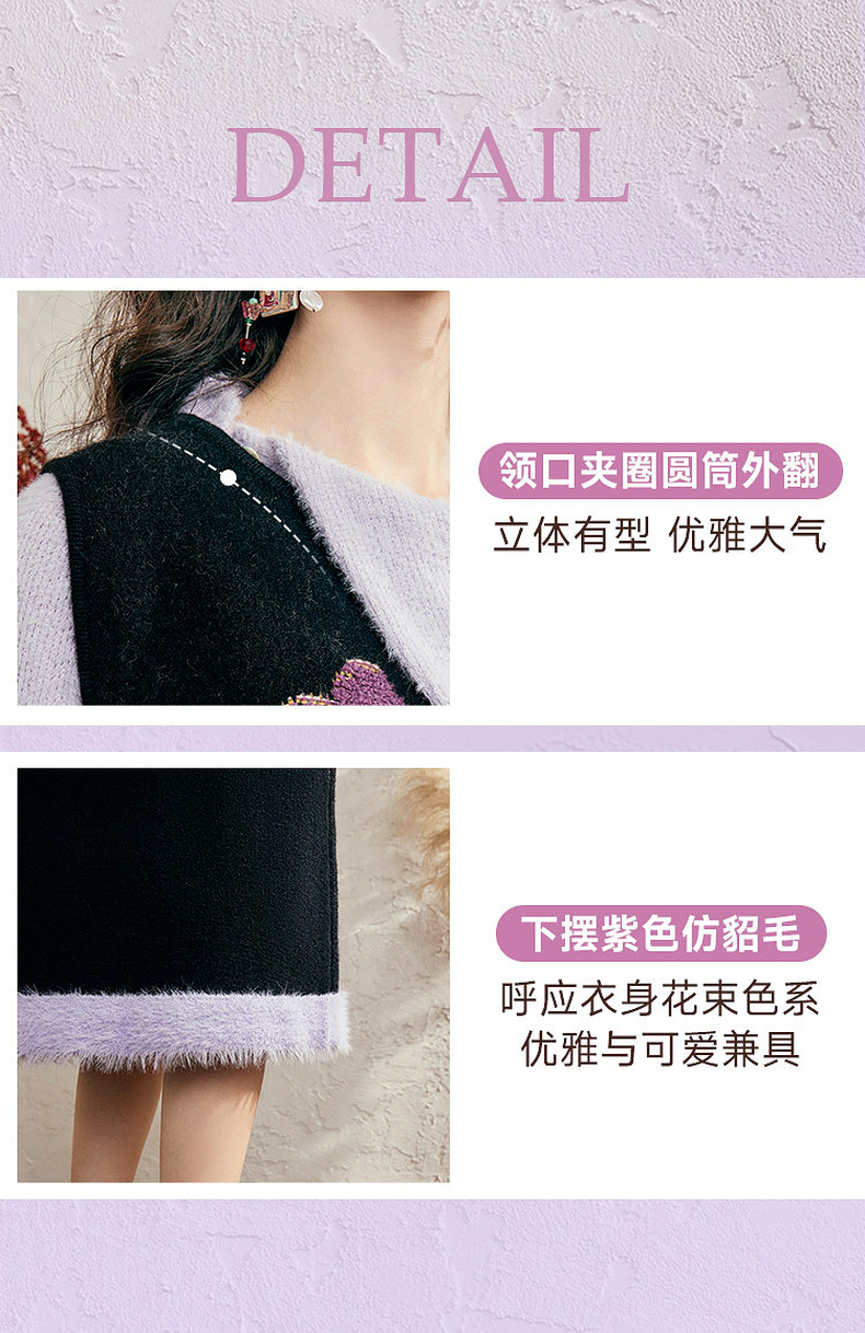 两三事 独美娇花 2024秋季新款复古花卉毛巾绣无袖背心裙连衣裙