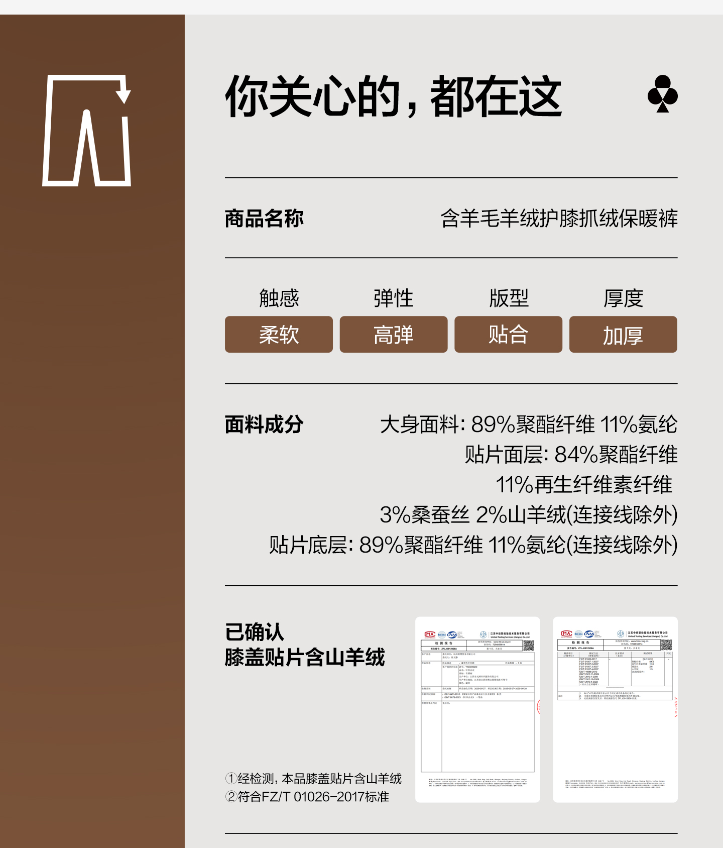 【新品上新】有棵树含羊绒蚕丝加绒加厚冬季打底裤薄款秋裤男士保暖裤-W4020