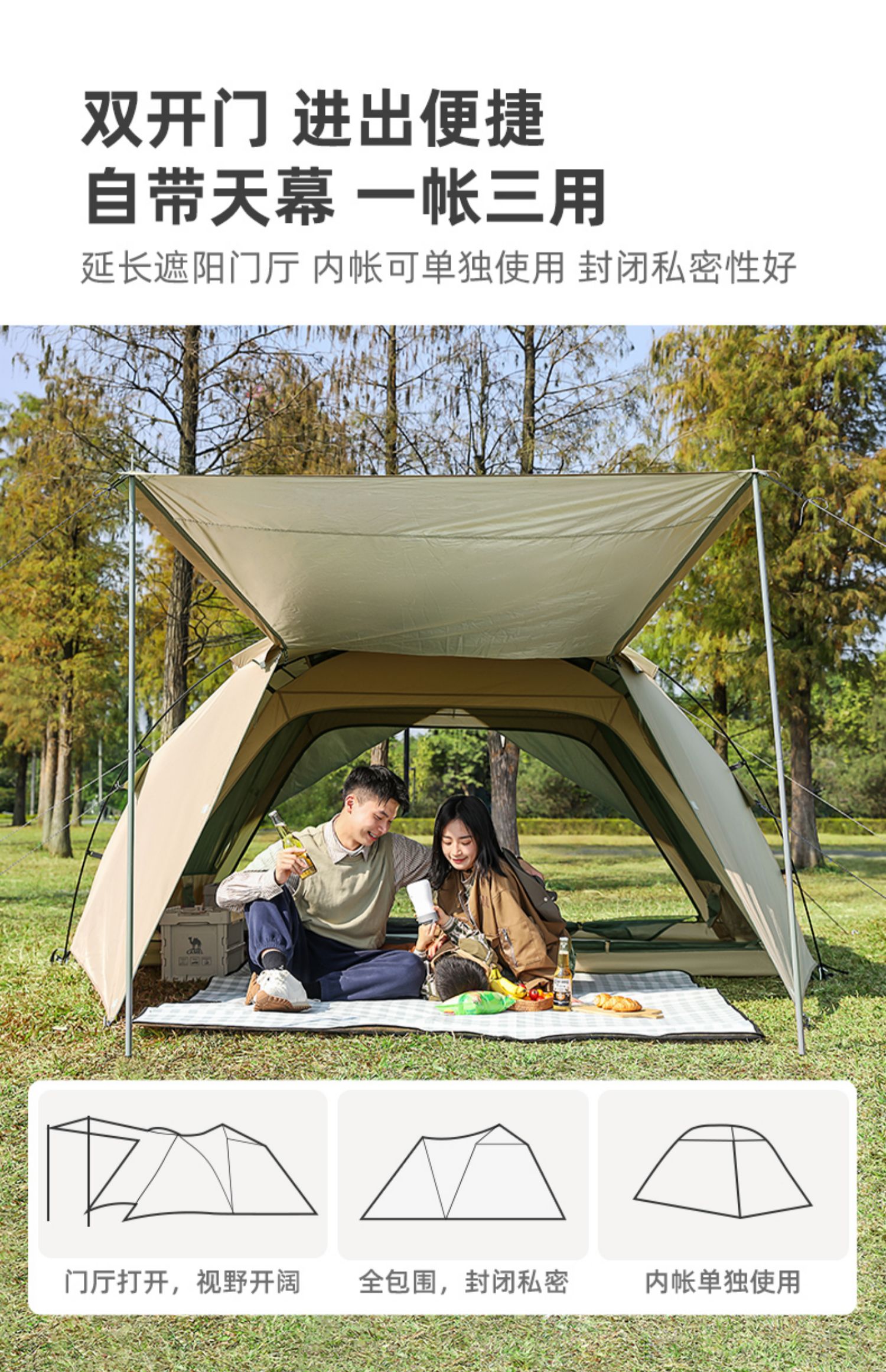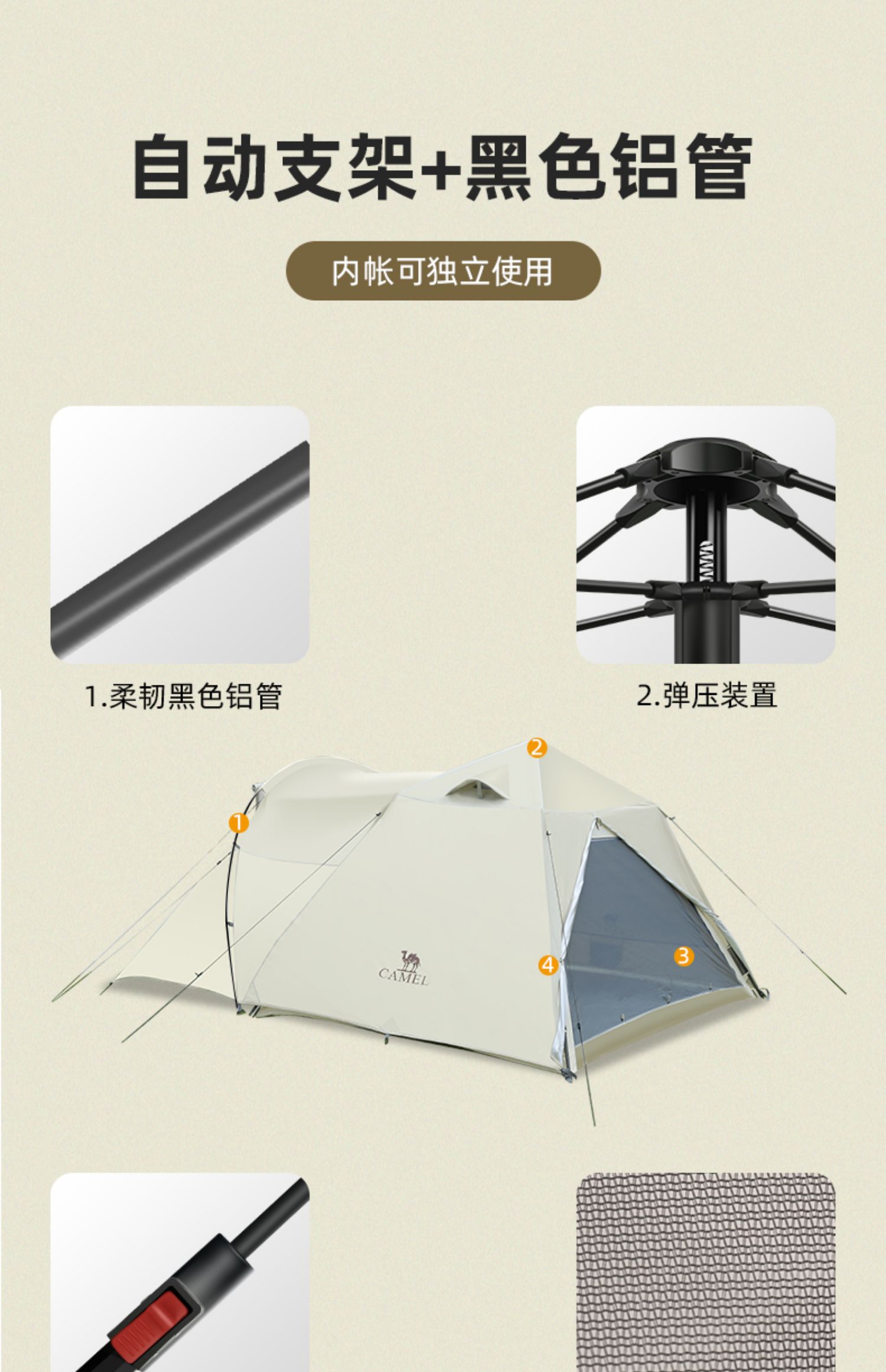 [荒漠]骆驼户外精致露营便携折叠自动帐篷野营防雨防晒野外隧道帐 1V32266267