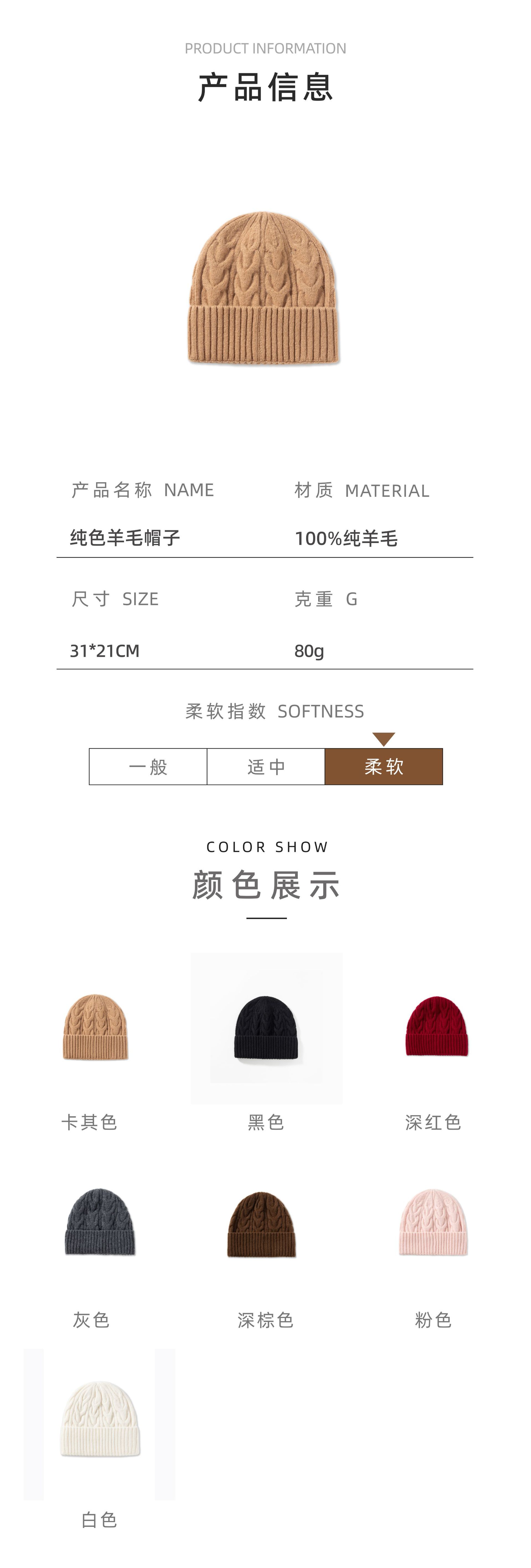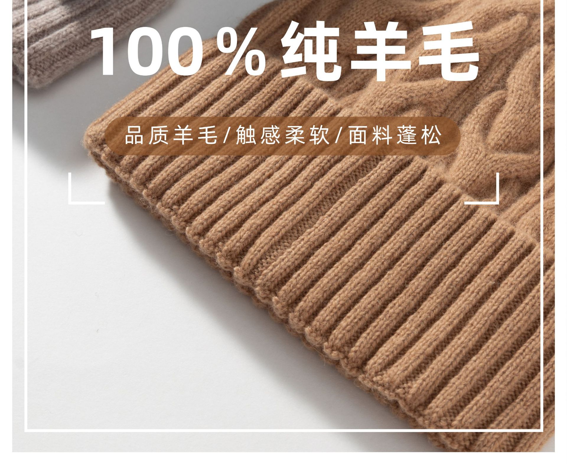 纯色100%纯羊毛毛线帽女生冬季针织帽百搭女高级感帽子男保暖简约新款爆款小红书同款