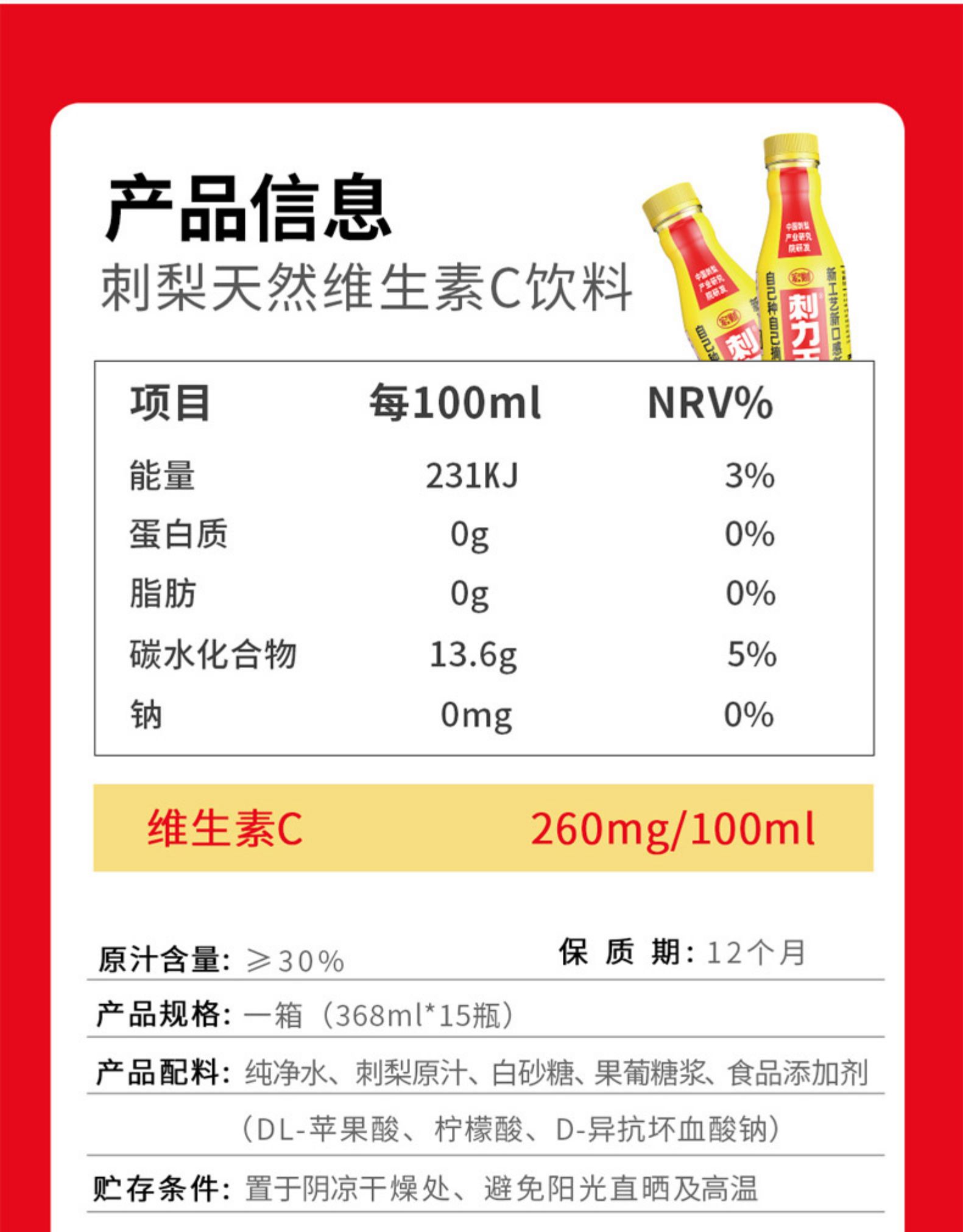刺力王牌PET刺梨果汁饮料368ml/瓶
