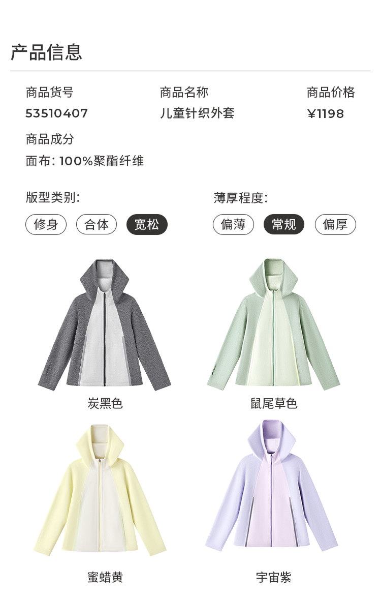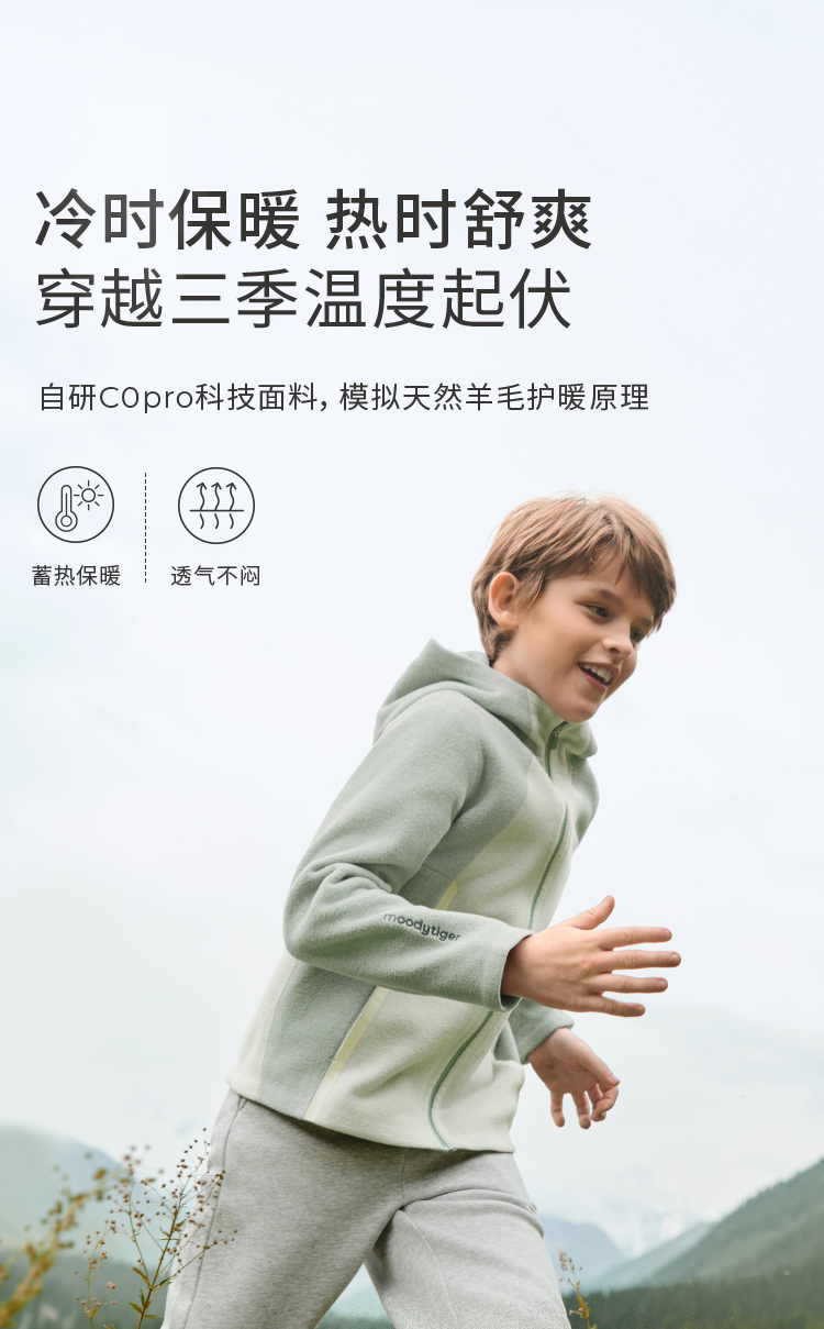 【大J专属】moodytiger儿童连帽暖皮衣保暖干爽舒适针织外套53510407/61510411