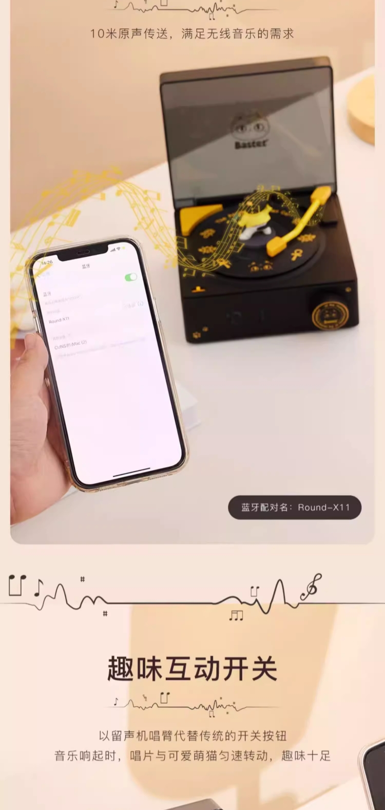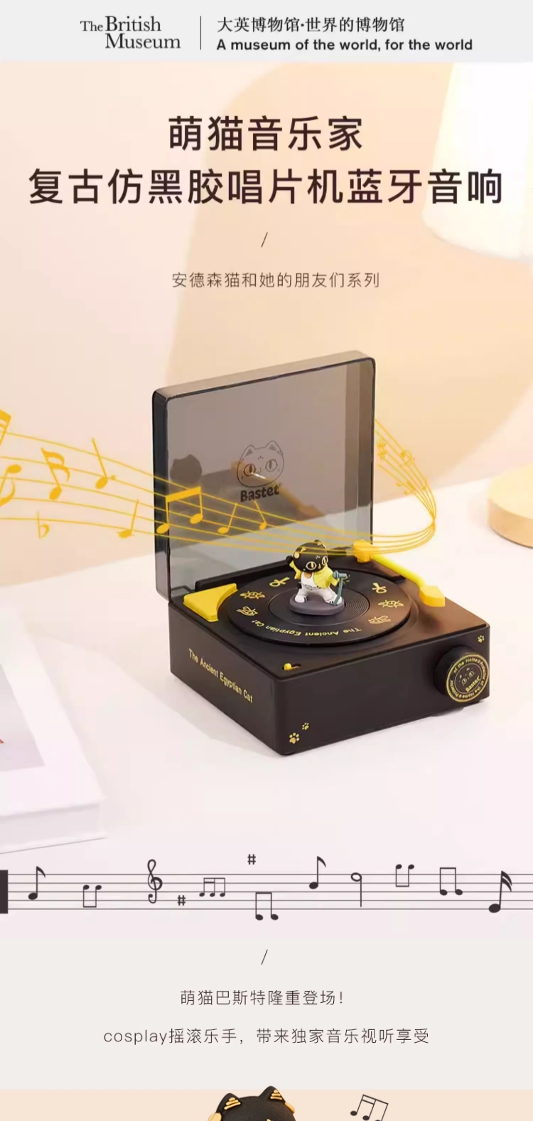 大英博物馆 盖亚·安德森猫和她的朋友们系列 萌猫音乐家复古仿黑胶唱片机蓝牙音响礼盒