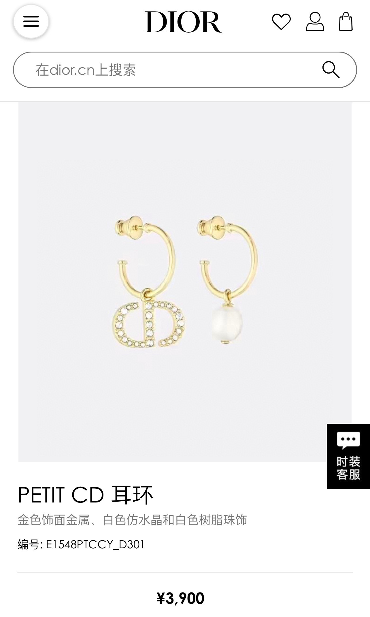 DIOR迪奥CD珍珠耳钉耳环