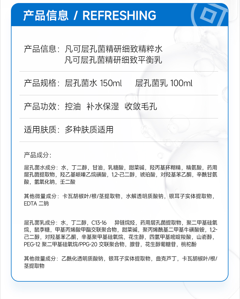 【100元任选3件】层孔菌控油水乳正装 有效期至2028年9月
