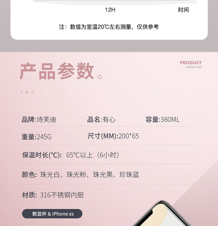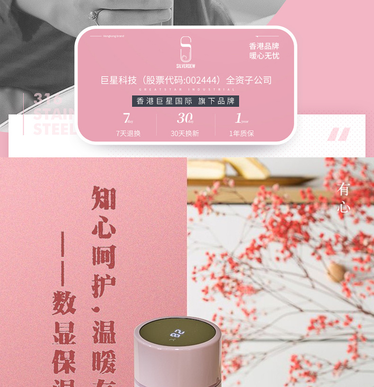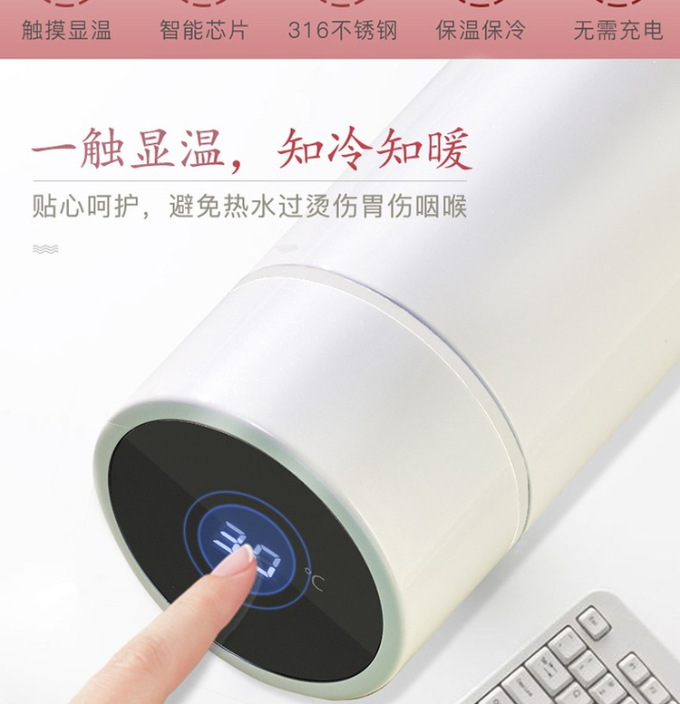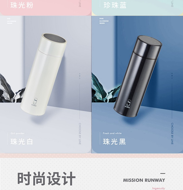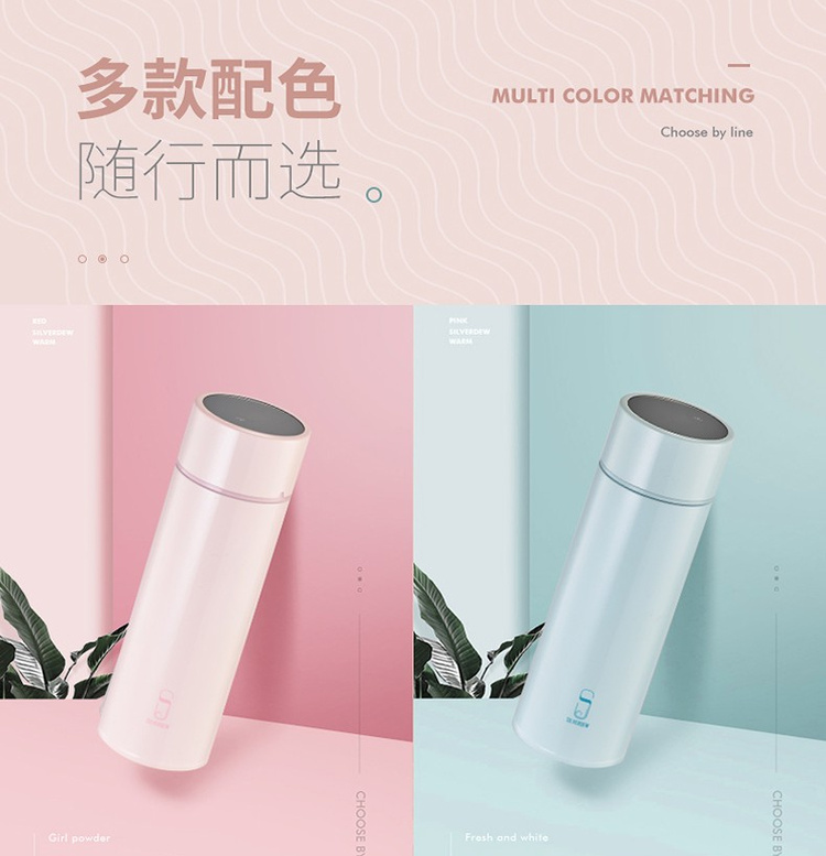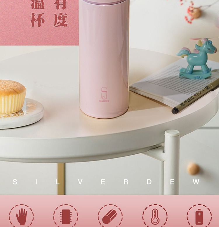 诗芙迪(SILVERDEW)316不锈钢智能数显保温杯女士水杯子380ml
