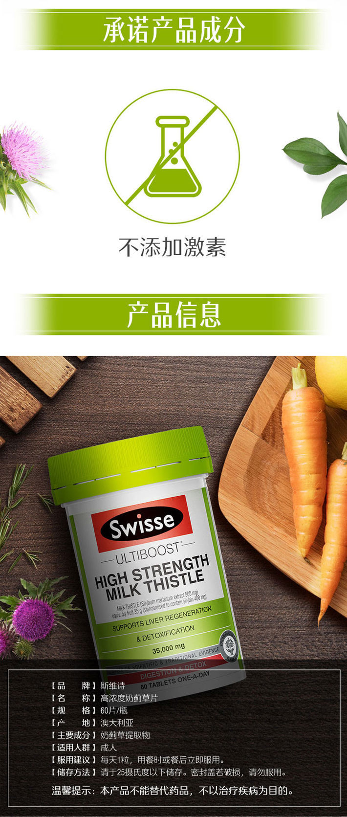【保税仓】Swisse斯维诗奶蓟草肝脏护肝片 60片/瓶【有效期至25年8月】