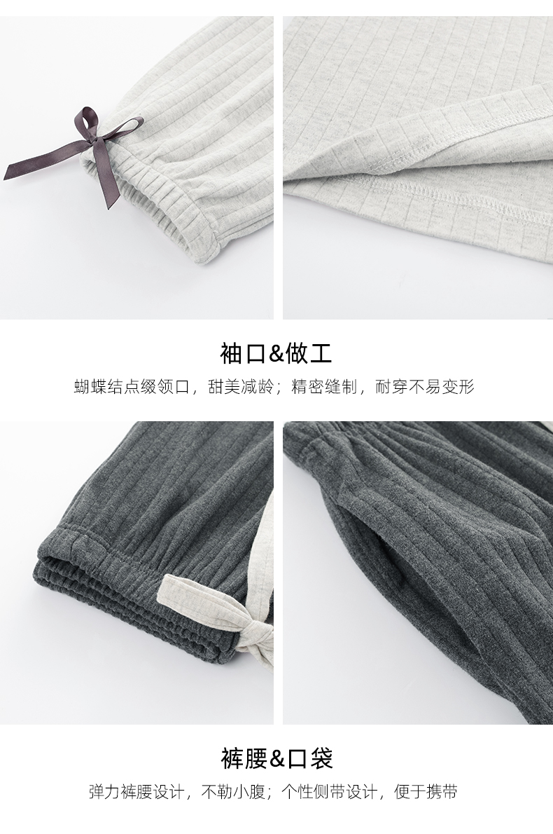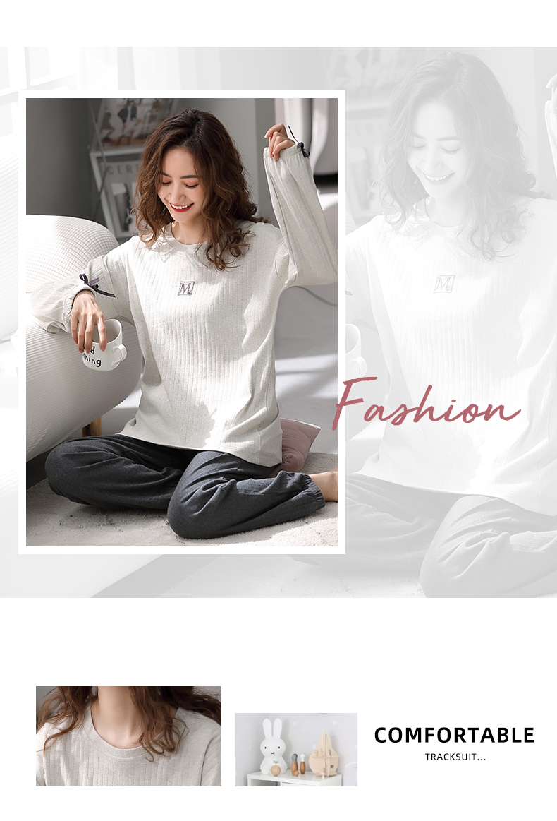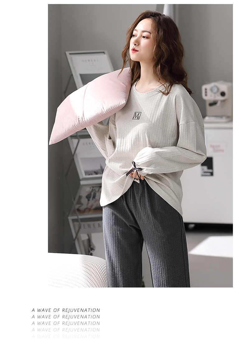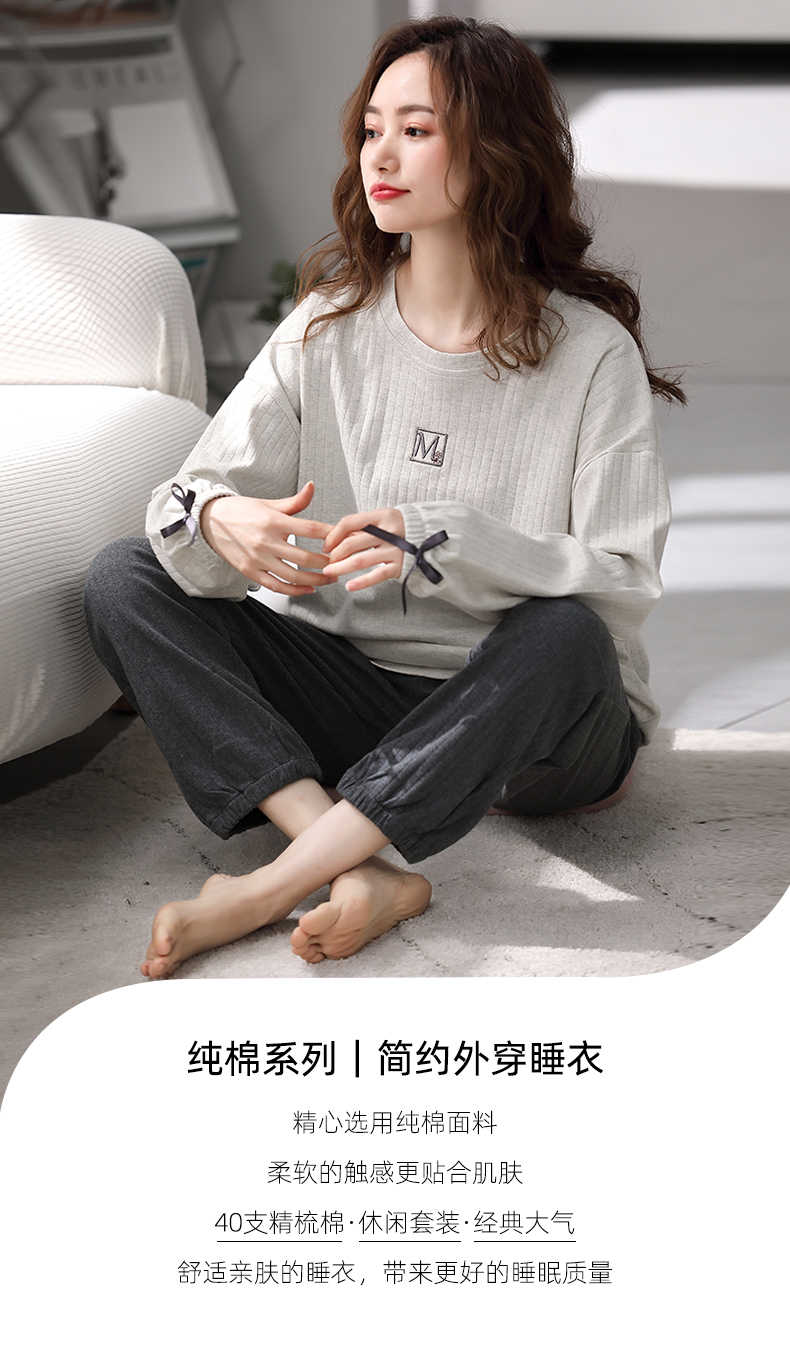 芬腾睡衣女纯棉长袖柔软春秋款套装宽松大码圆领全棉套头家居服