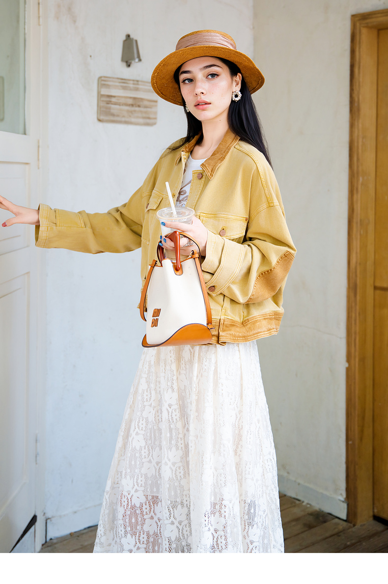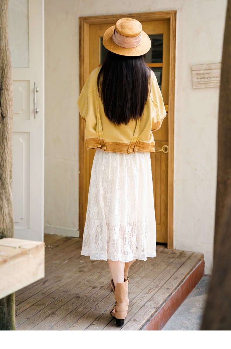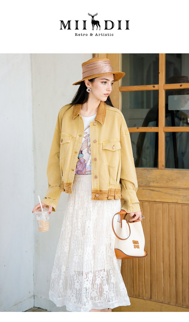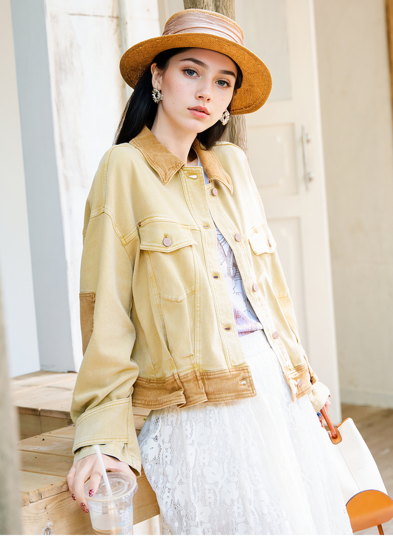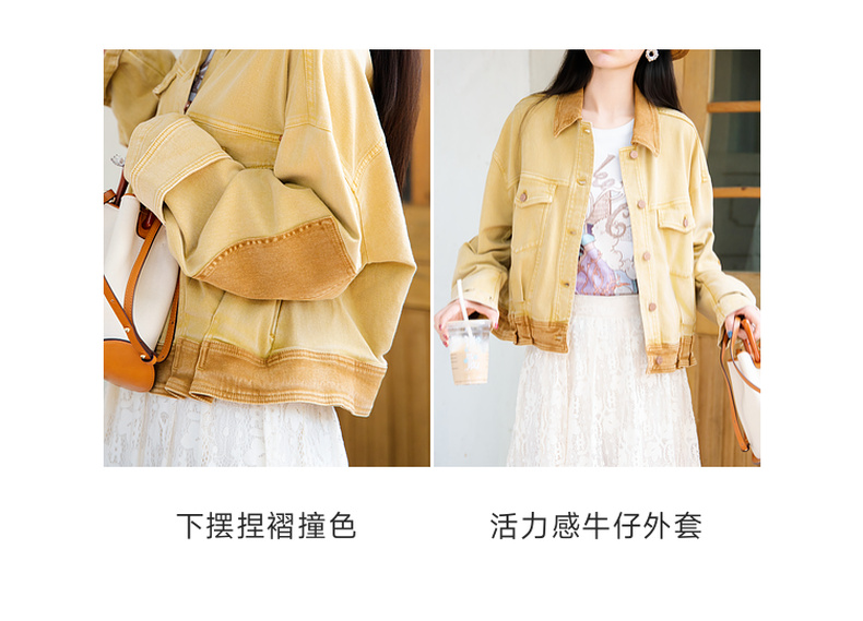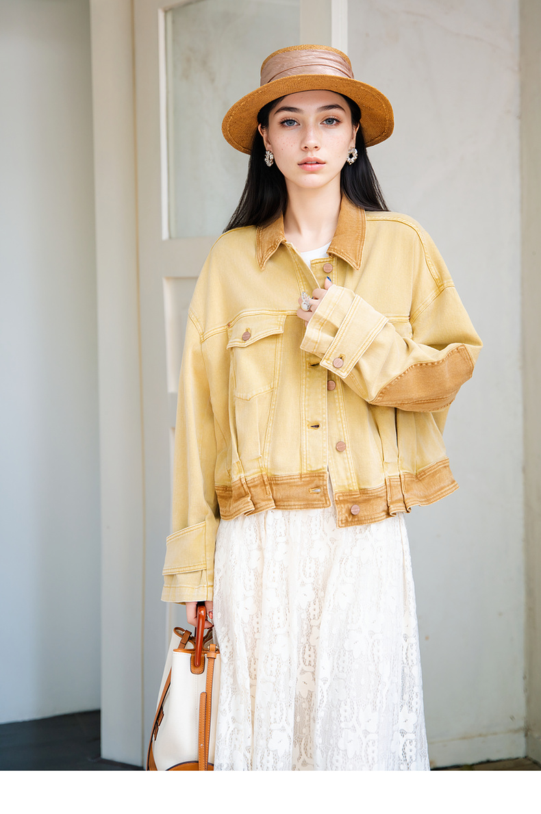 谜底短外套女2025秋新款复古风特色洗水工艺拼色牛仔服257MW7743