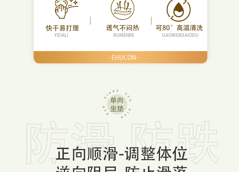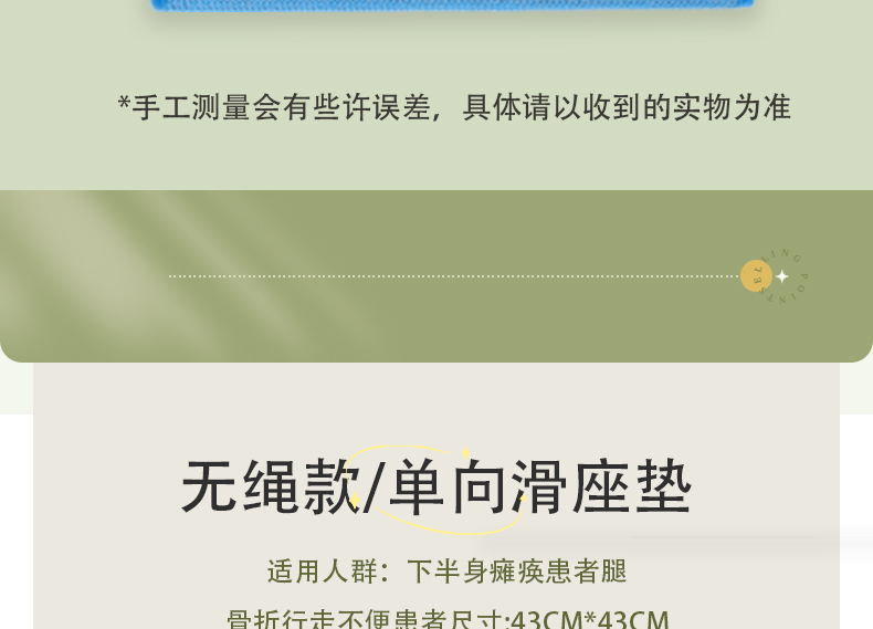 移护康专利产品天蓝色单向滑垫出口规格,出口品质,可水洗