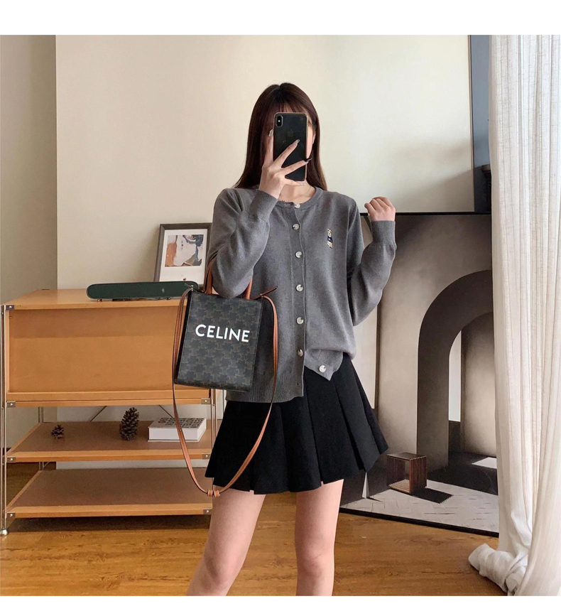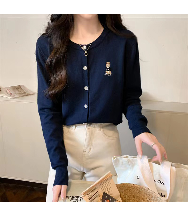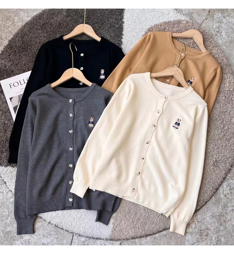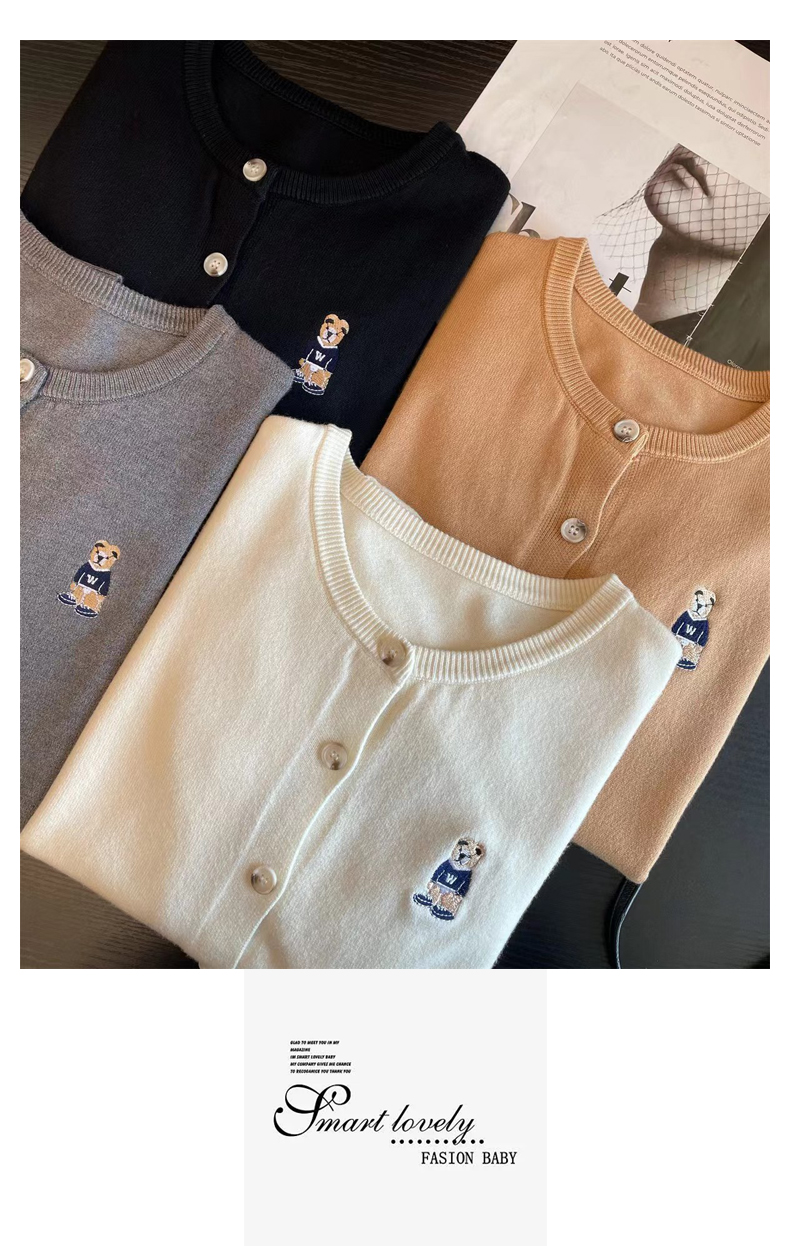 【秋季女装丨MUERYI 针织开衫 】 温柔刺绣小熊甜美针织开衫 宽松版型 面料轻薄透气性好 简约圆领设衬脸型不挑人,日常出行百搭